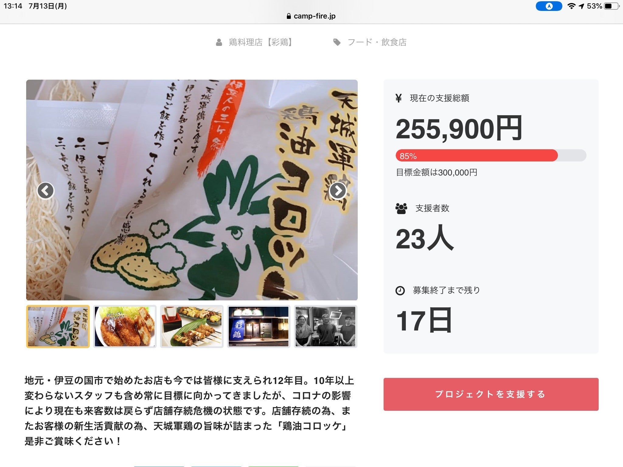 最初に、ご支援いただいた皆様、本当にありがとうございました!これまでに23名様もの方々にご支援いただきました!現在、開始から2週間で早くも当初の目標達成まであと少しとなり、当店、スタッフ一同、うれしさと感謝の気持ちでいっぱいです!初めての挑戦で期待より不安の方が大きかったですが、今は皆様の暖かいお言葉と気持ちをいただき挑戦して良かったと思っております。期間は残り3週間となりました。皆様への感謝の気持ちを忘れずにリターンのコロッケを作りながら皆様からのご支援を有効活用できるよう準備を進めてまいりたいと思います!クラウドファンディング期間終了まで、まだもう少しあります。まだまだコロナの影響がある中で大変恐縮であつかましくはありますが、生き残るため、乗り越えるためのご支援、ご協力、何卒よろしくお願いします!彩鶏 古屋芳典