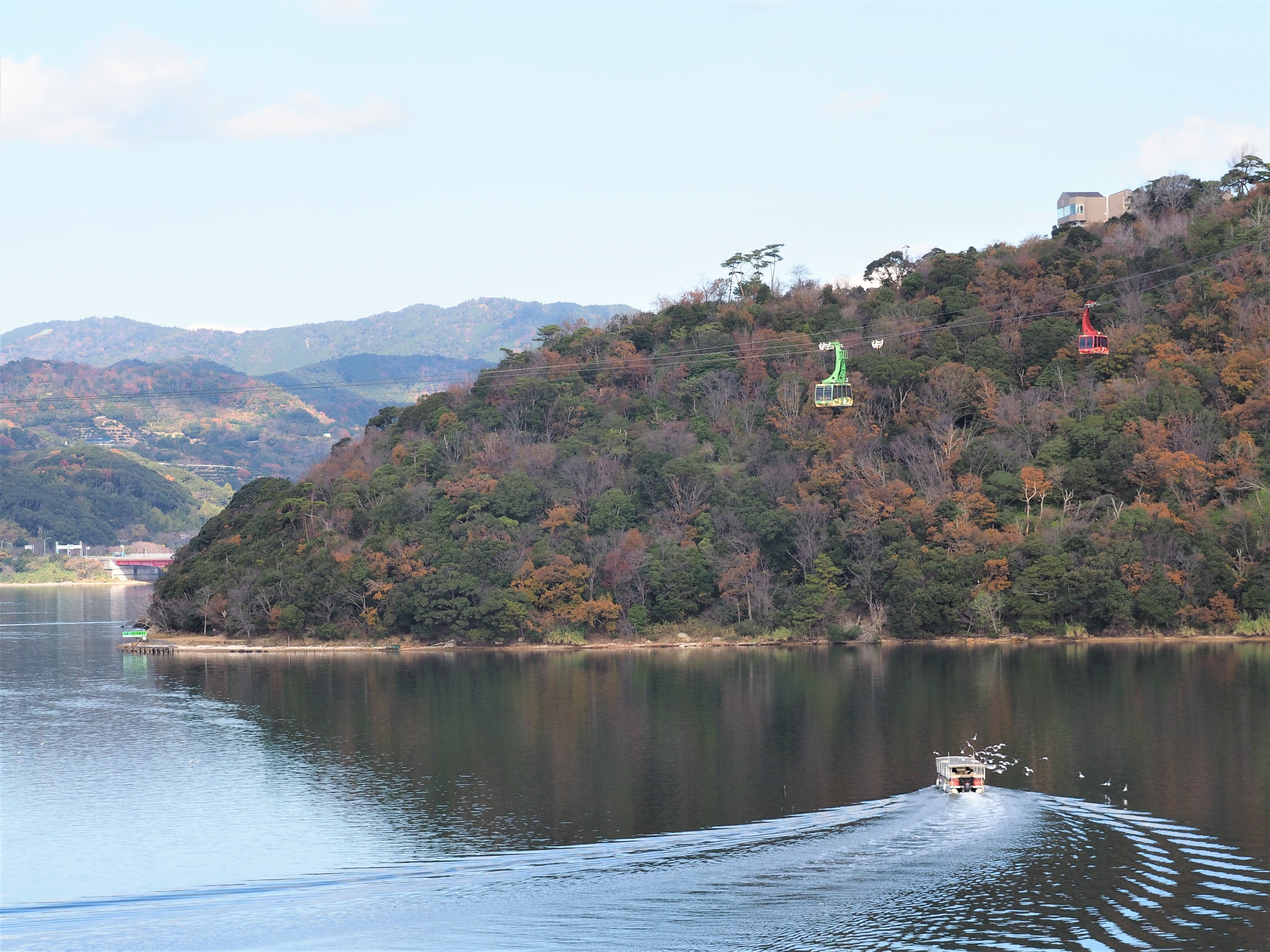 湖上を渡るロープウェイもございます。