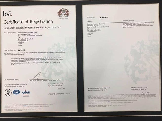 完全暗号化、クラウドデータのAES 128ビット暗号化、そして高いセキュリティレベルを誇るGoogleクラウドストレージのサポートを採用しました。さらにClever Skyの無線IPカメラは情報セキュリティのなかで最も厳しいとされるBSI27001認定(下記証明書を参照)を受け、消費者のプライバシーを保証しました。