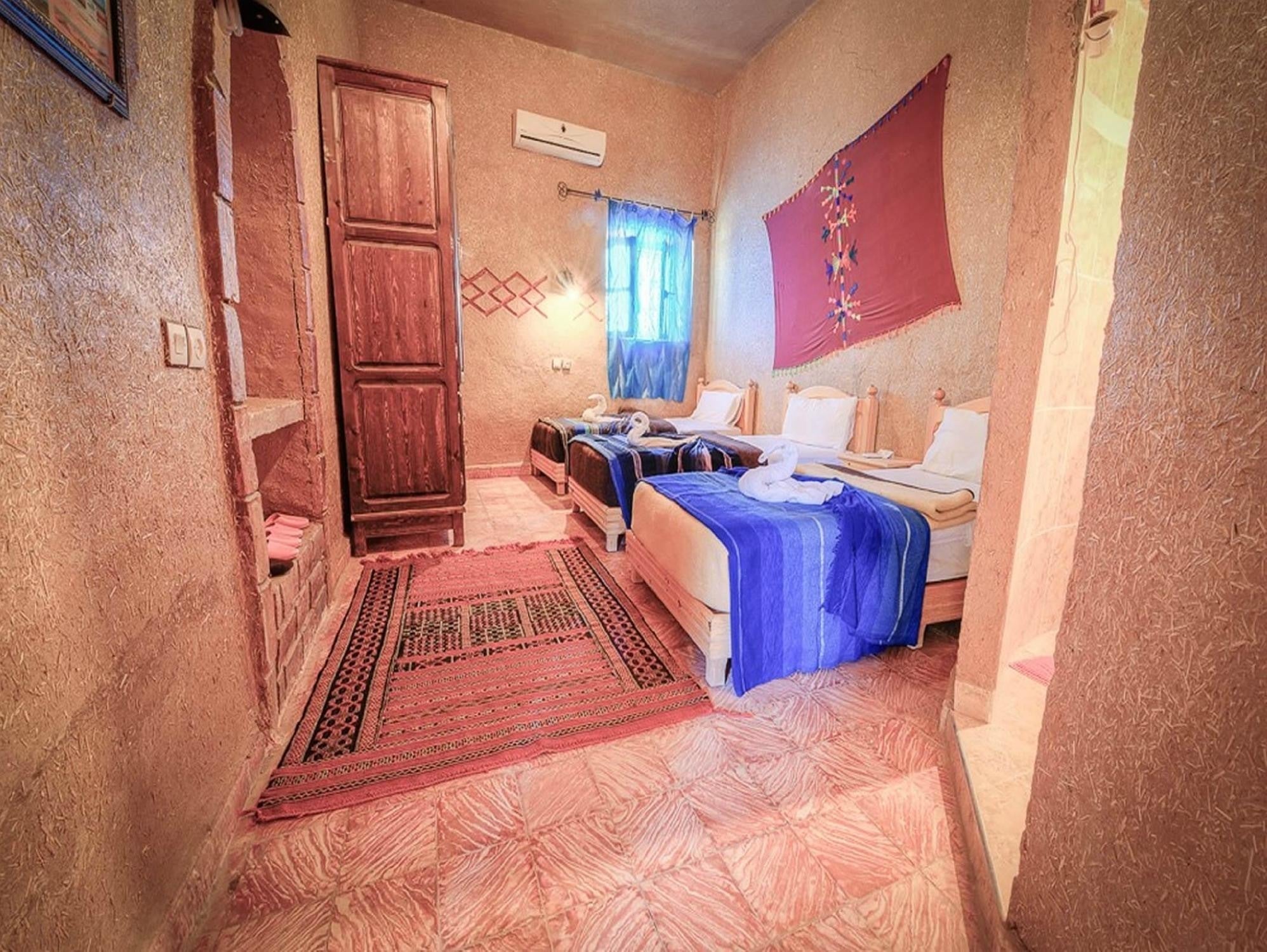 朝夕2食付き,エアコン,ホットシャワー,トイレは日本のウォシュレット,ドライヤー有り,ベッドはキングサイズ,いつでもプール利用可,Wifiあり,村のバス停までの無料送迎など、文句なしのサービスです。リアド・マムーシュはその大砂丘の目の前の小さな村にあります!
