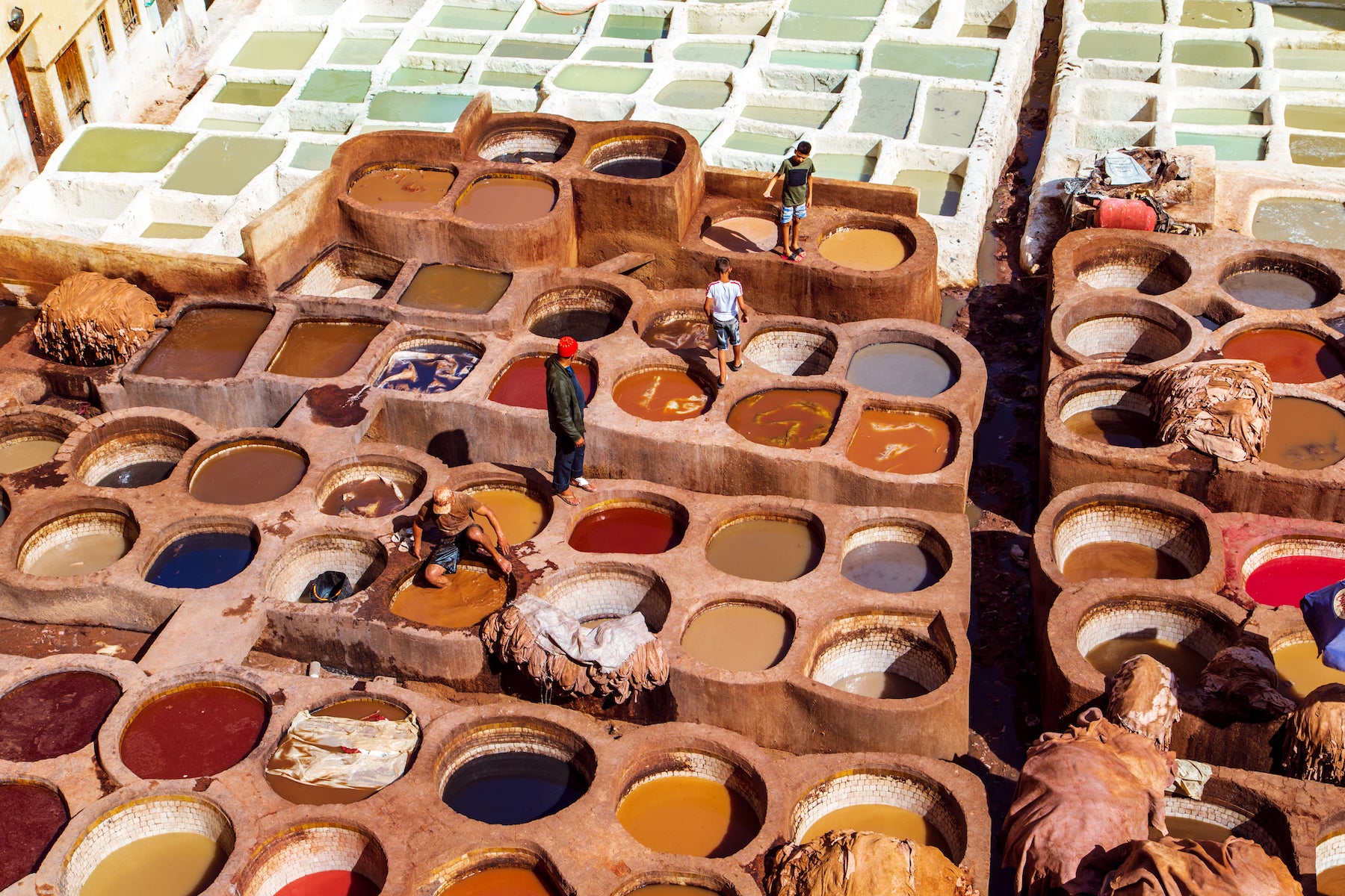 迷宮都市『フェズ』にある、なめし革染色職人街『タンネリ・ショワラ』の作業場