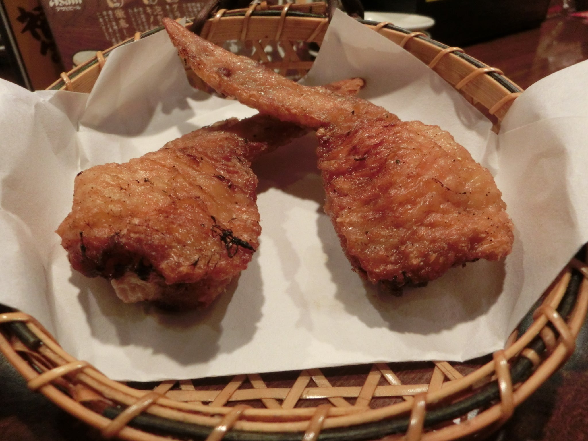 手羽先の骨をくり抜いて、そこに餃子の餡を詰め込み、一晩、赤ワインに付け込んでいるので、味がしみ込んでいて、美味しく食べて頂けます!!