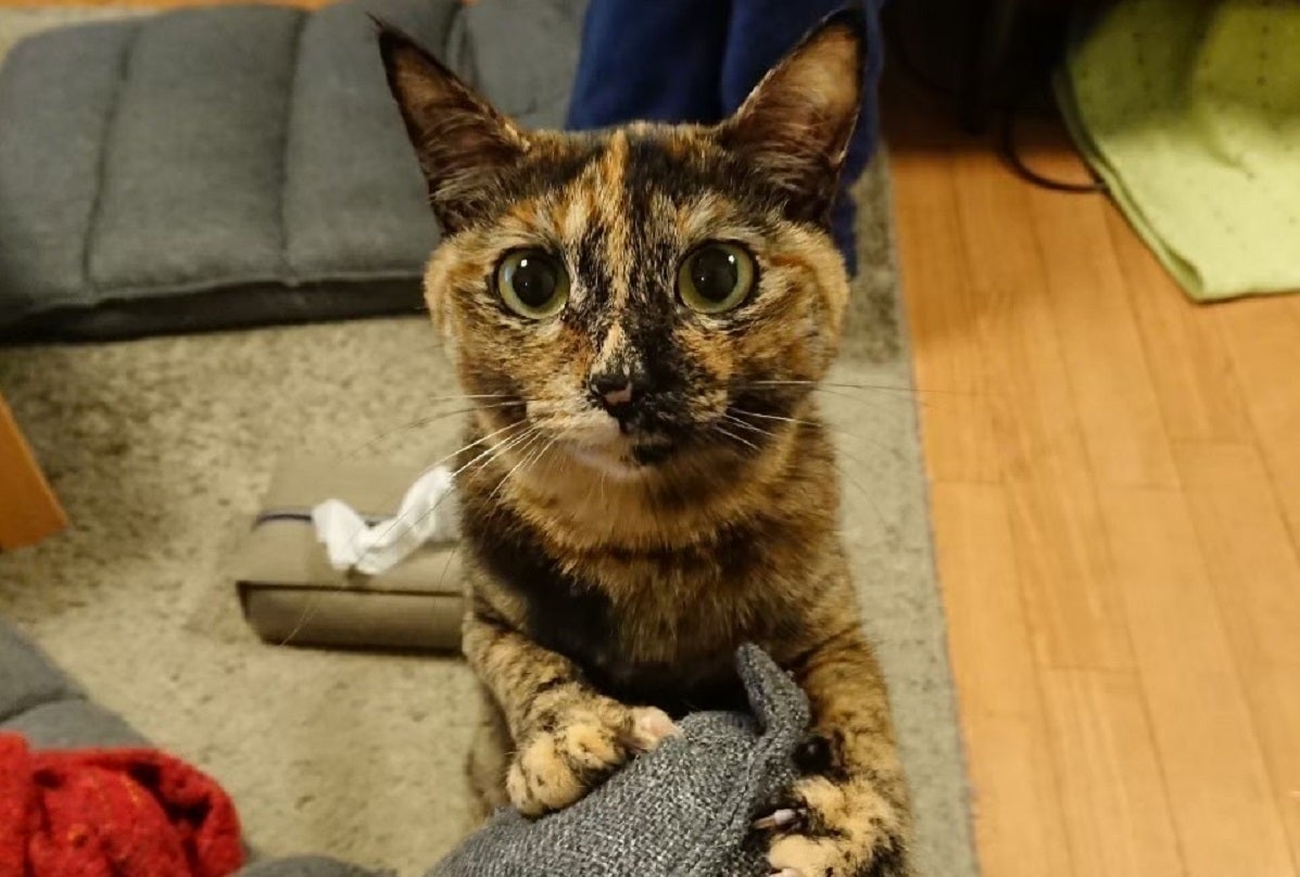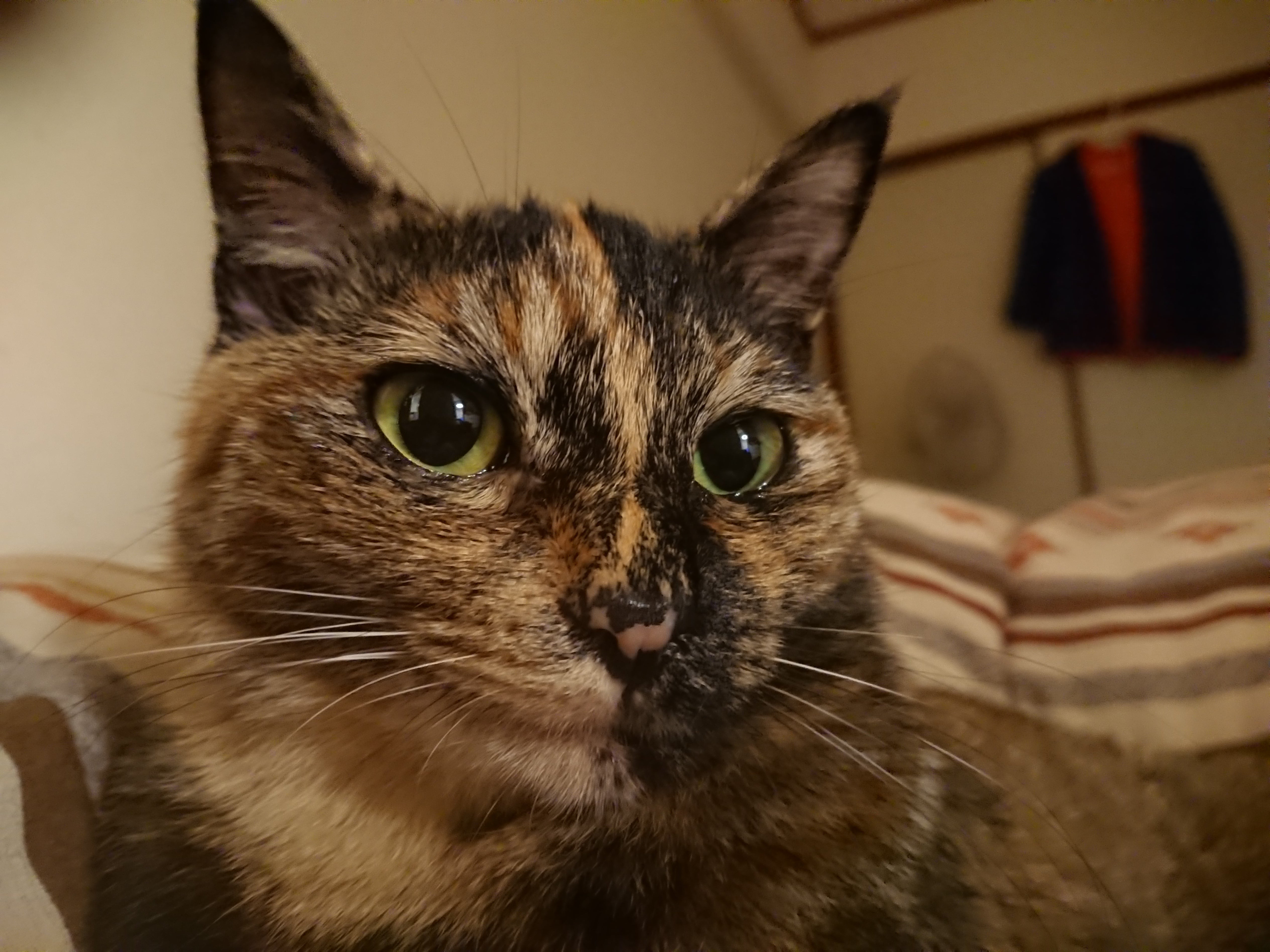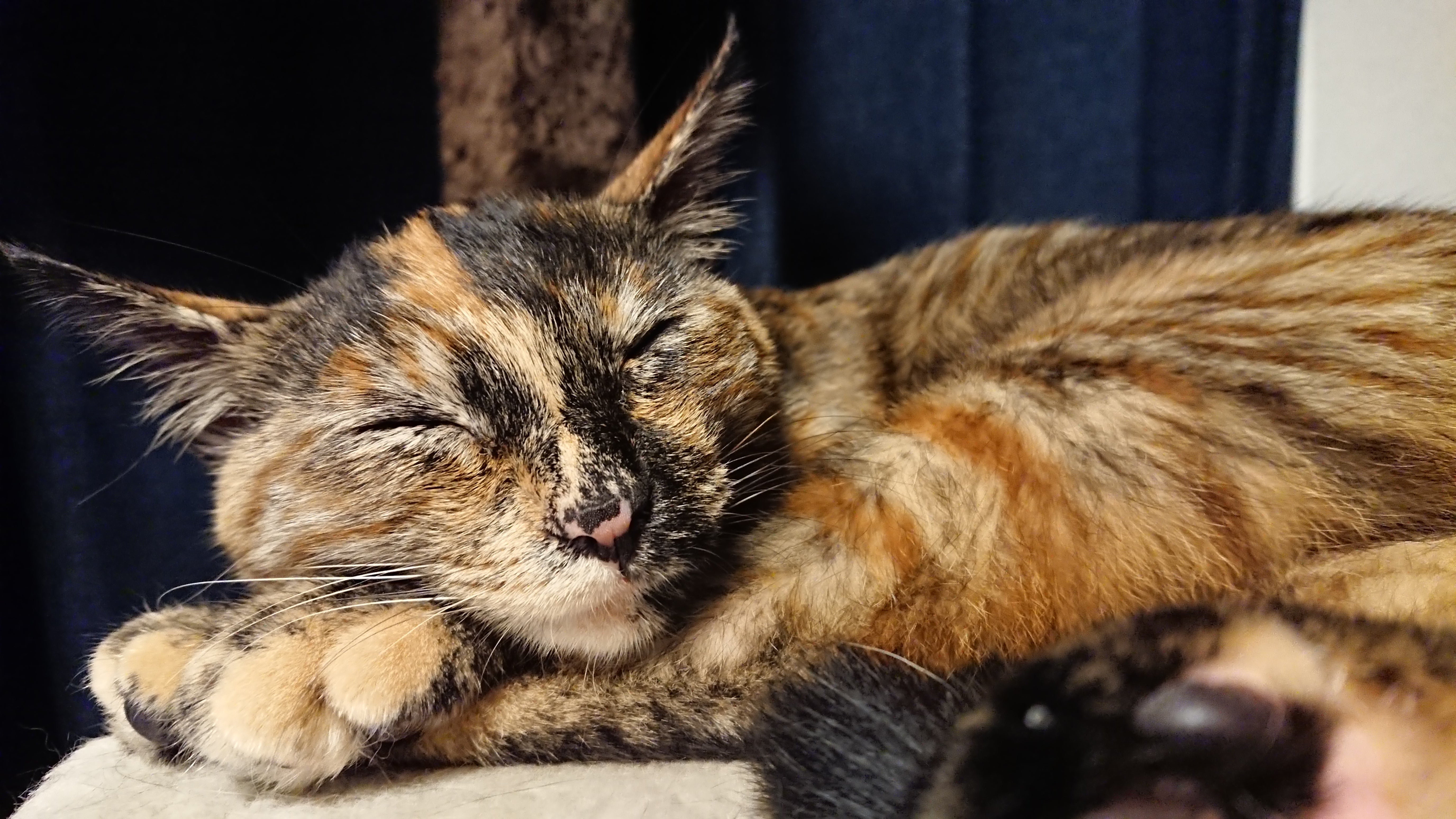 とにかくやんちゃで、よく食べて、よく寝る、よく遊ぶ子です。私たちが寝るときには枕元で行ったり来たりして眠るのを妨害したり、深夜の大運動会が激しかったり、すごい手が焼けますがとても可愛い大切な家族です。
