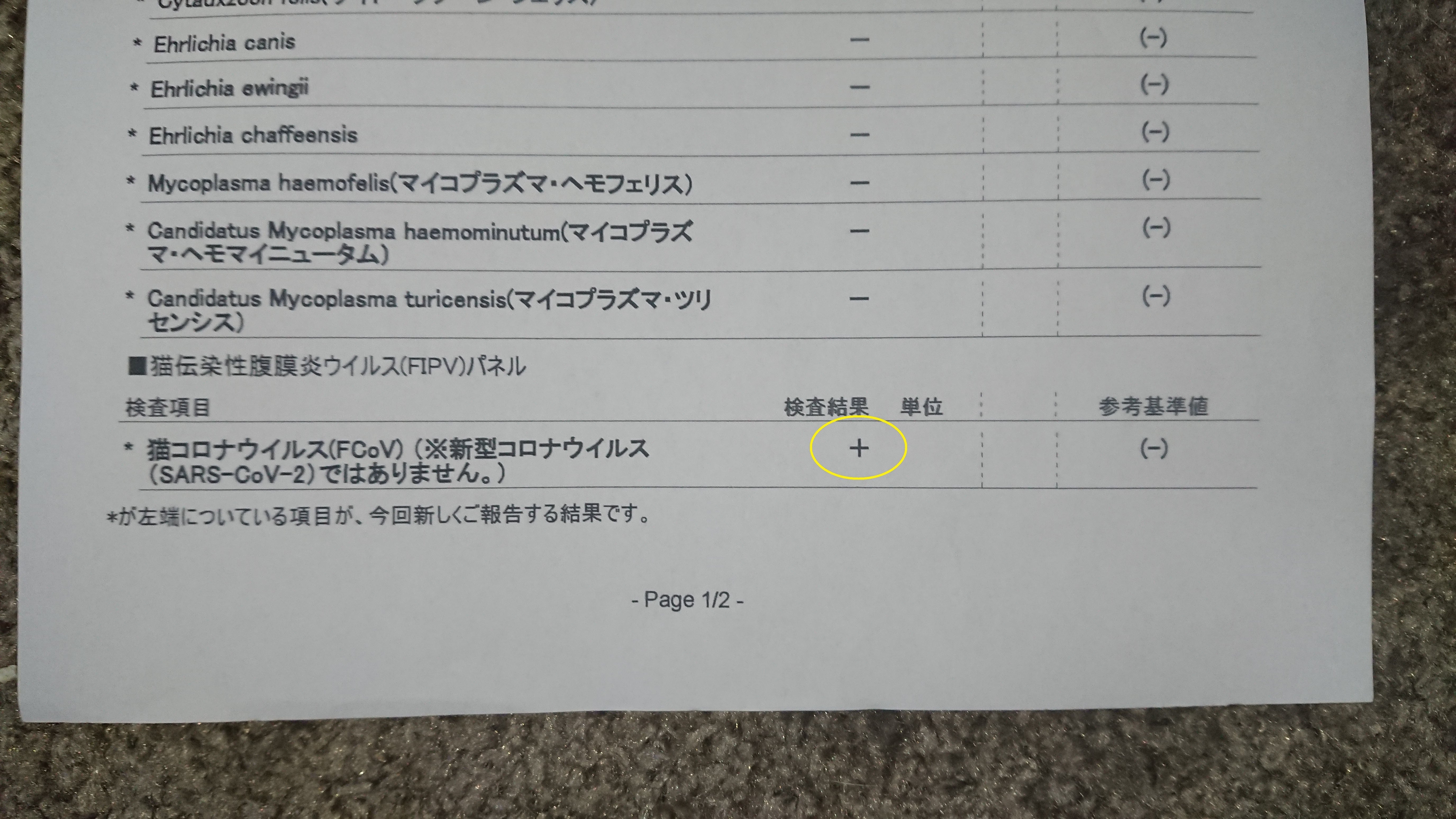 精密検査の結果、猫伝染性腹膜炎(FIP)でまず間違いないだろうと通知がきました。。。検査結果を待っている間、この病気がいかに危険なものかはネットで調べていたため、その確定診断をいただいた瞬間は頭が真っ白になりました。