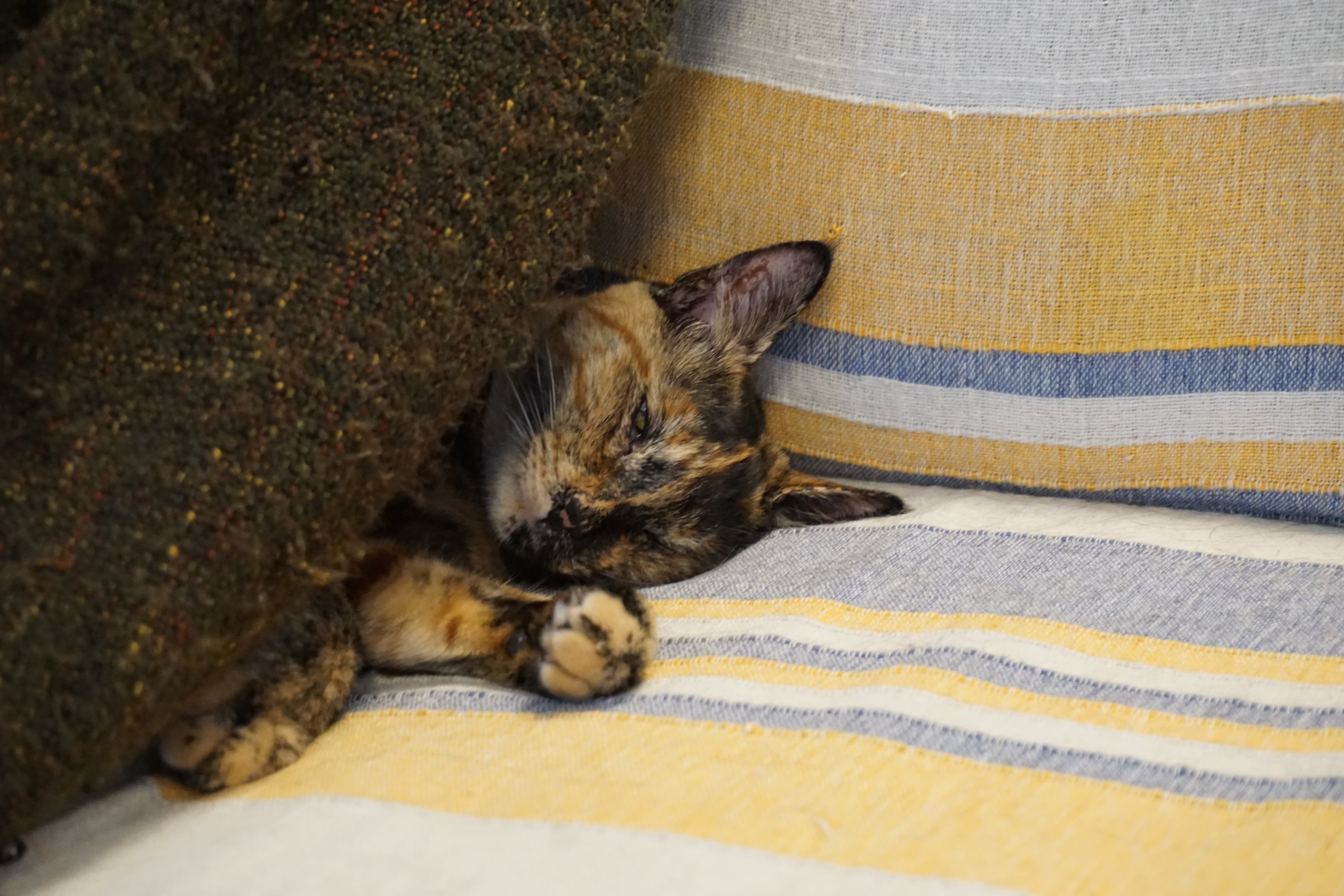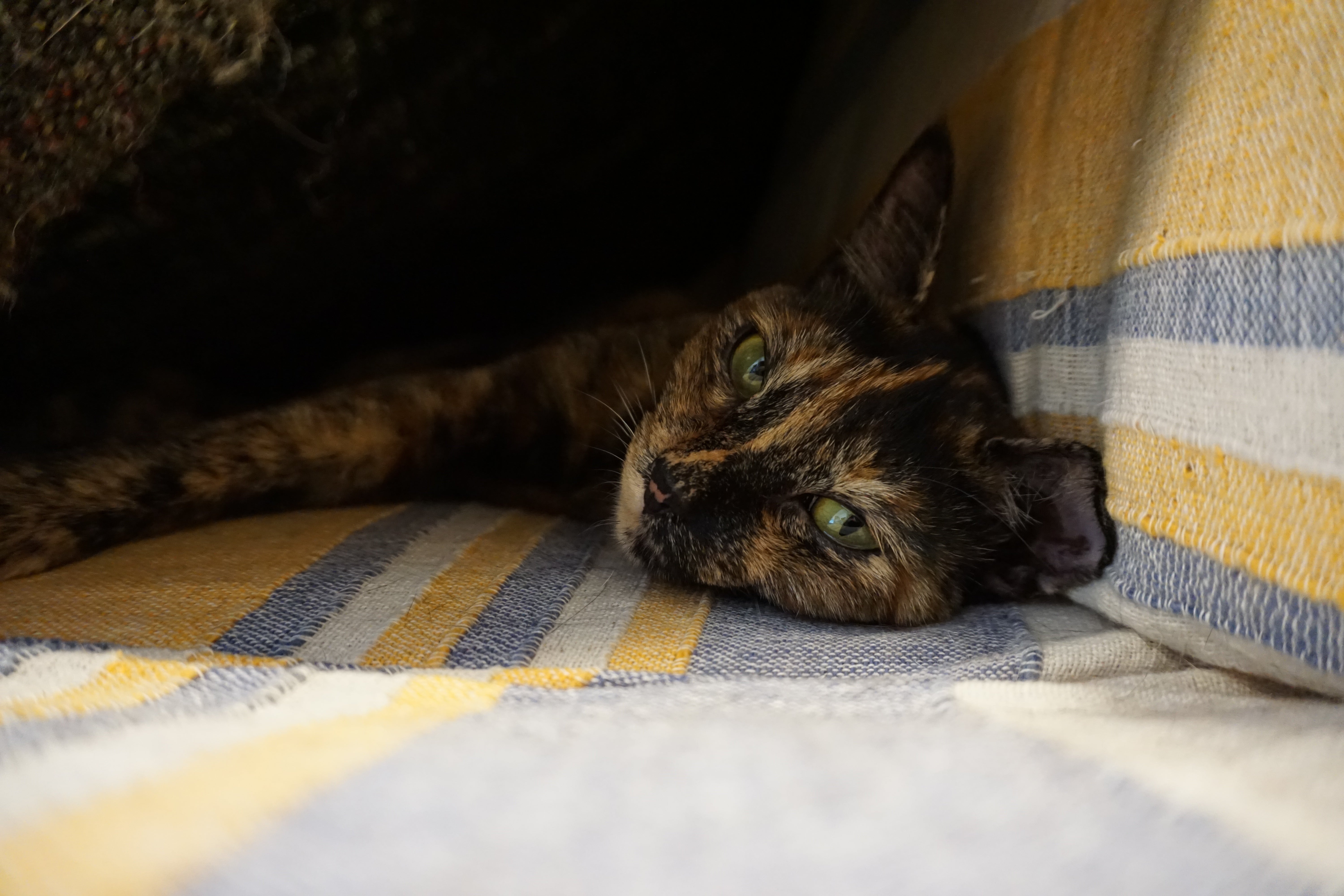 相変わらずブランケット天蓋の下がお気に入り♪
