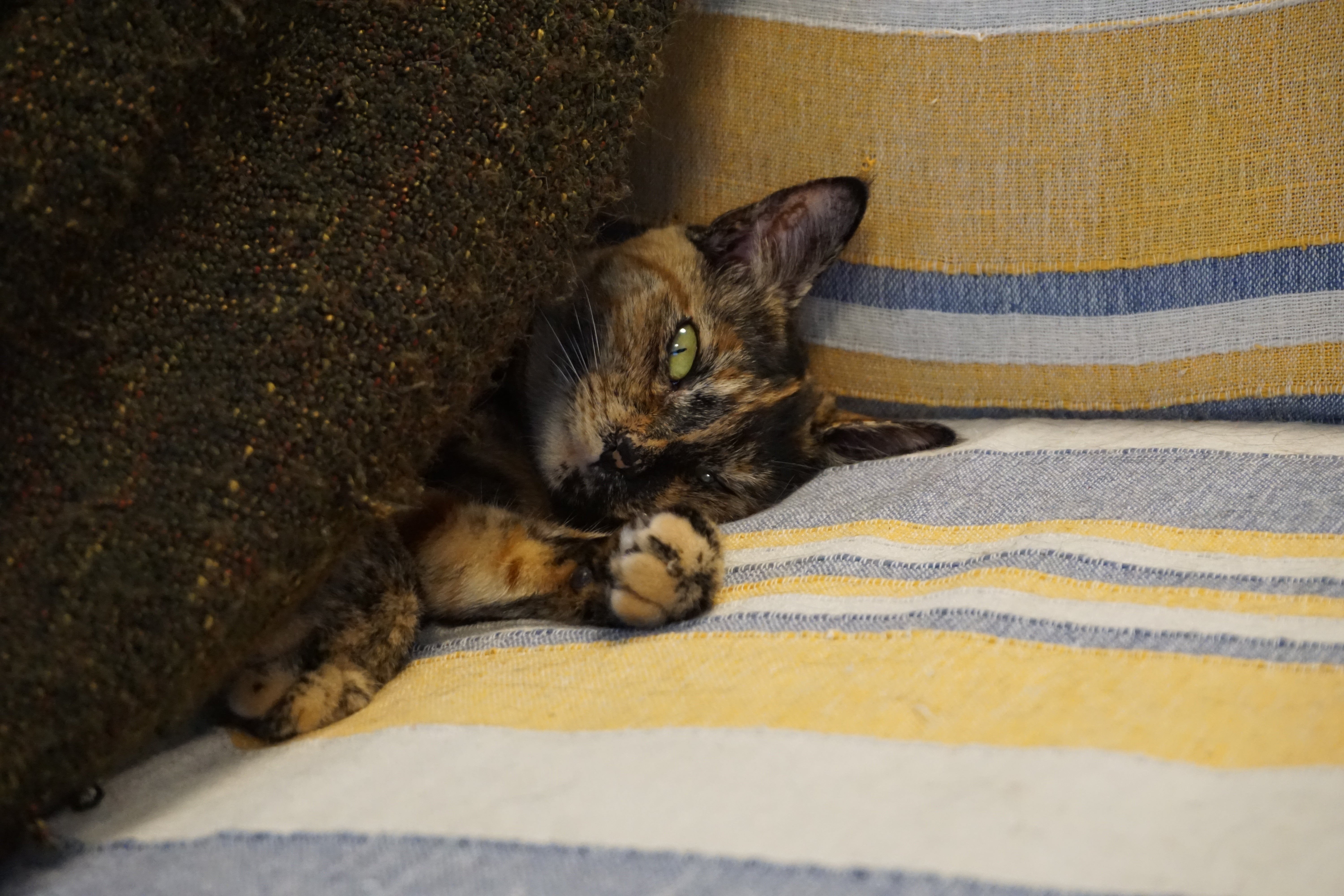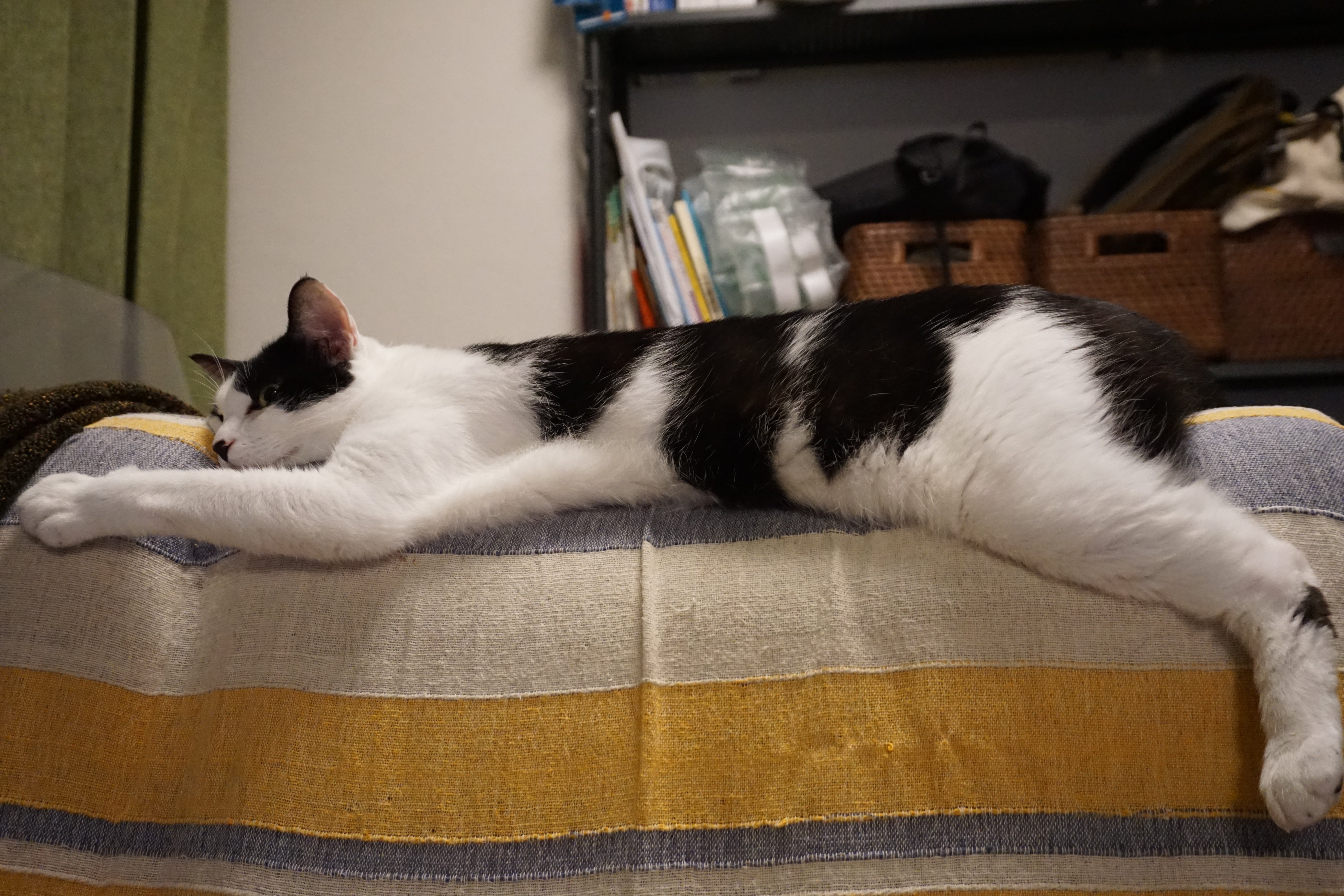 相変わらずソファの背もたれの上がお気に入り♪