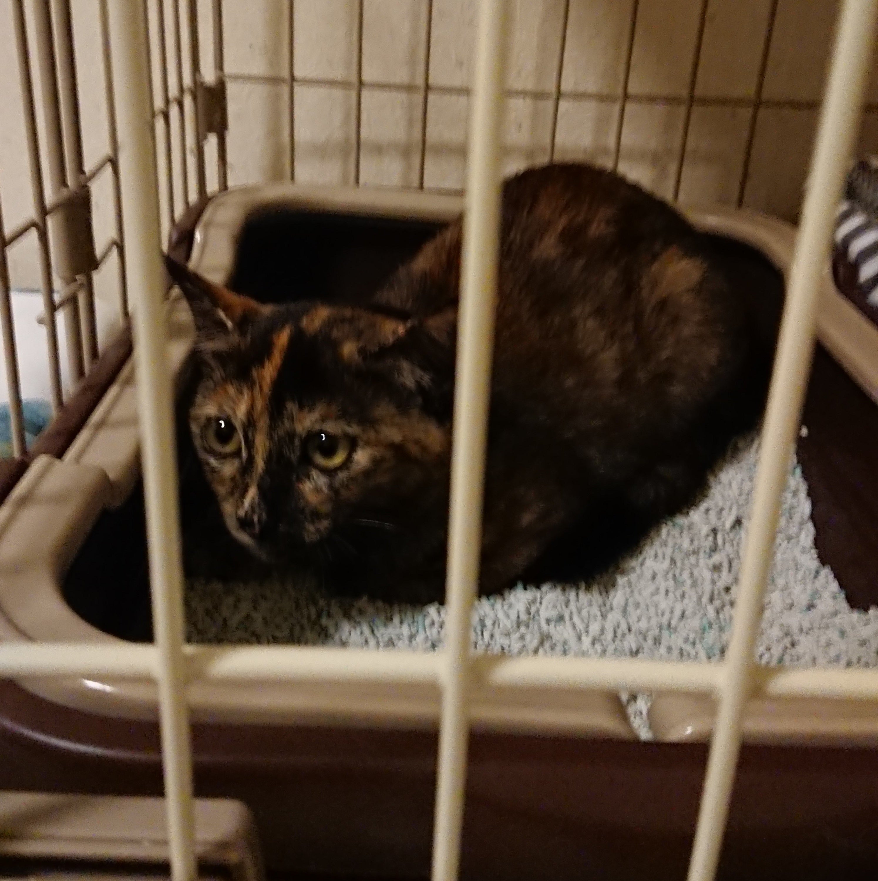 ↑我が家に来た初日。警戒しててトイレにこもりっぱなしです。