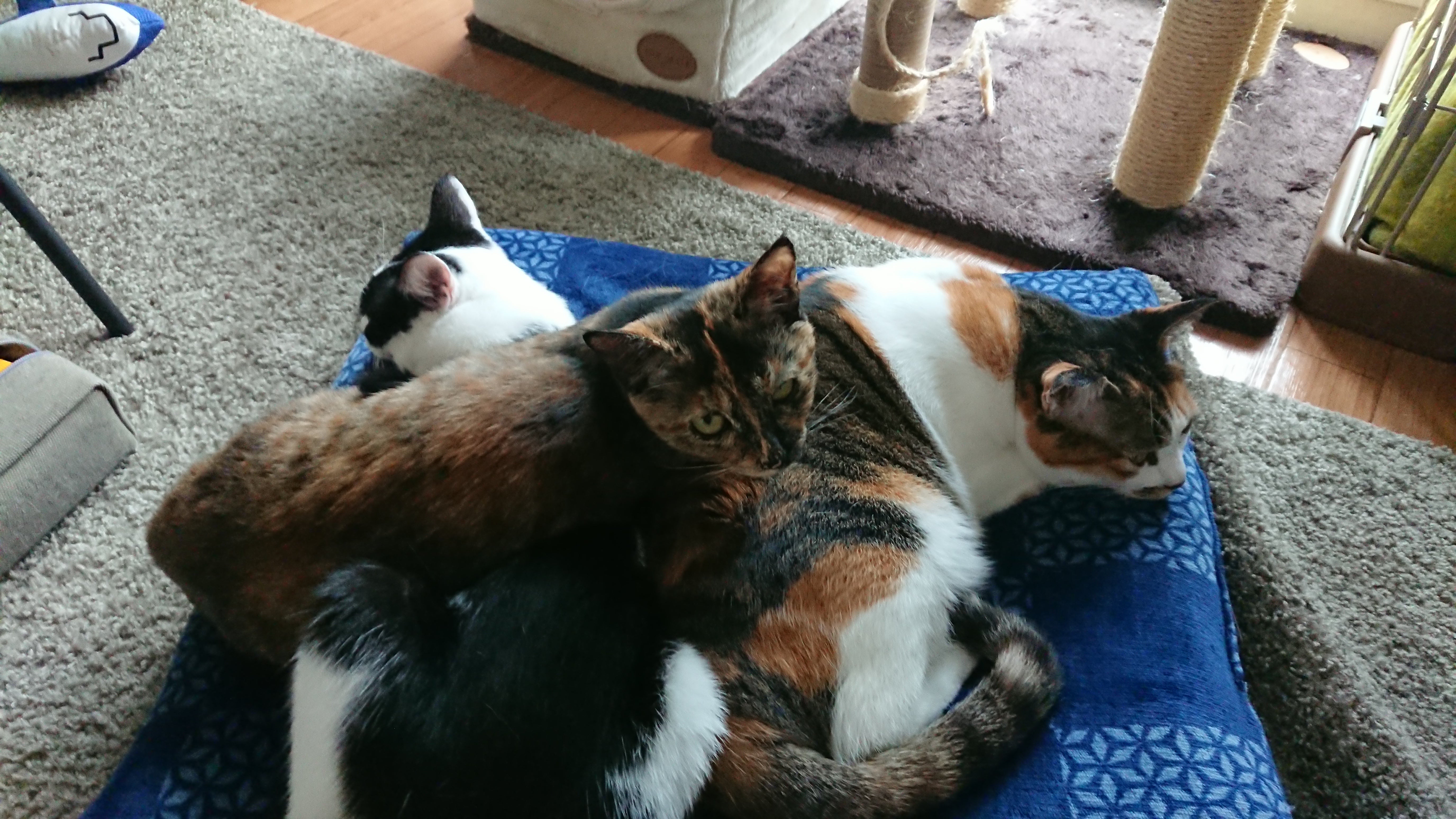↑先住猫2匹ともあっという間に打ち解けられました。