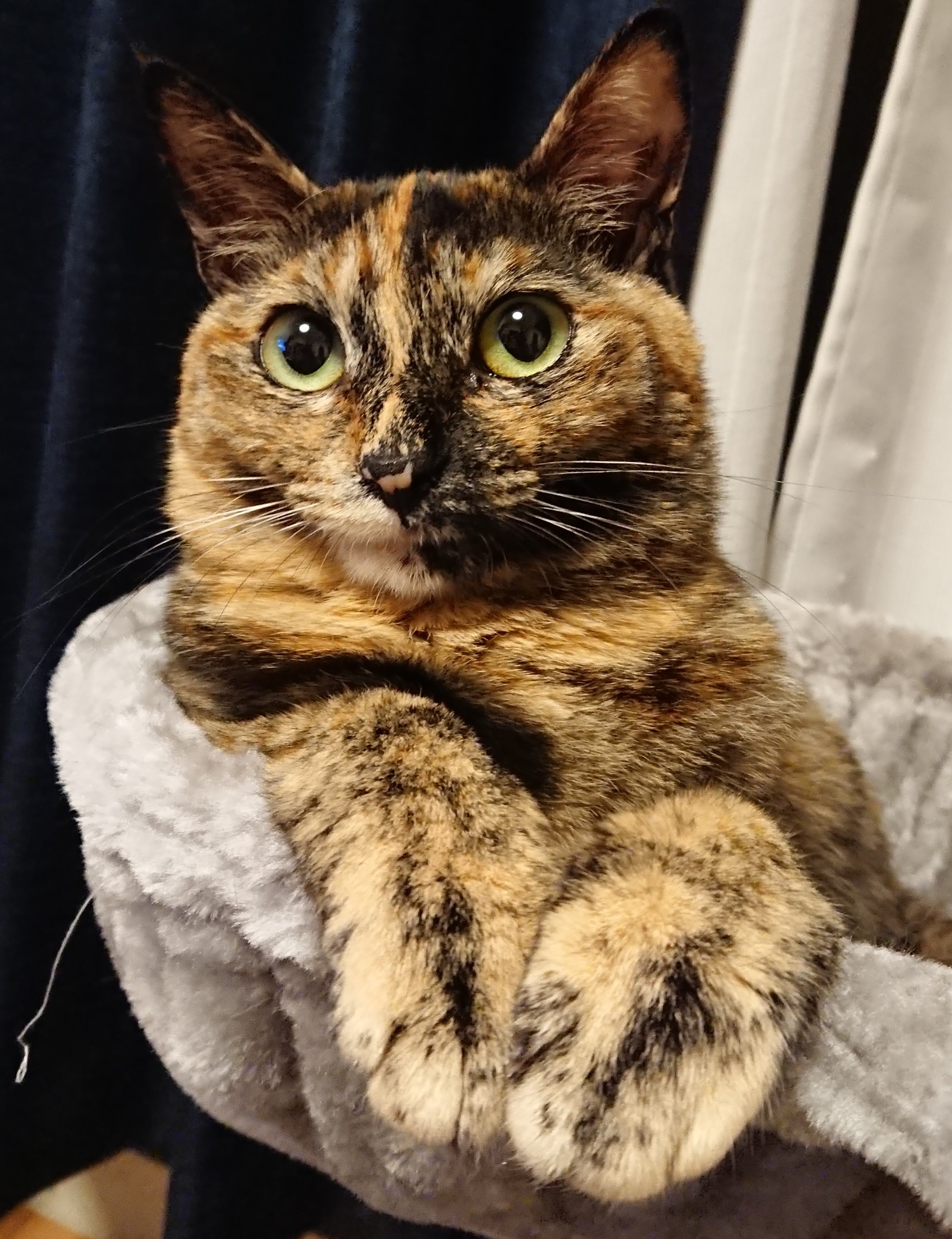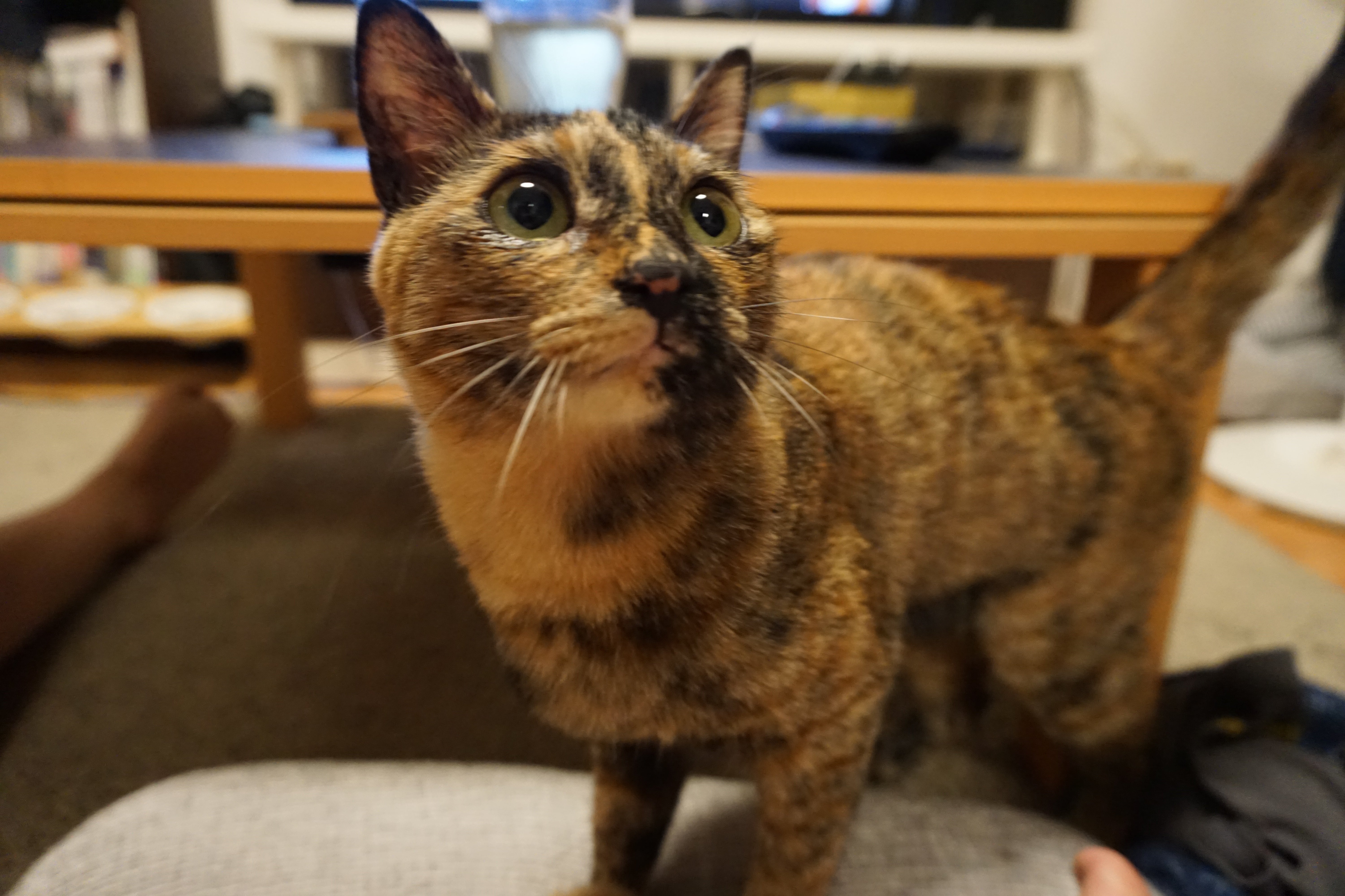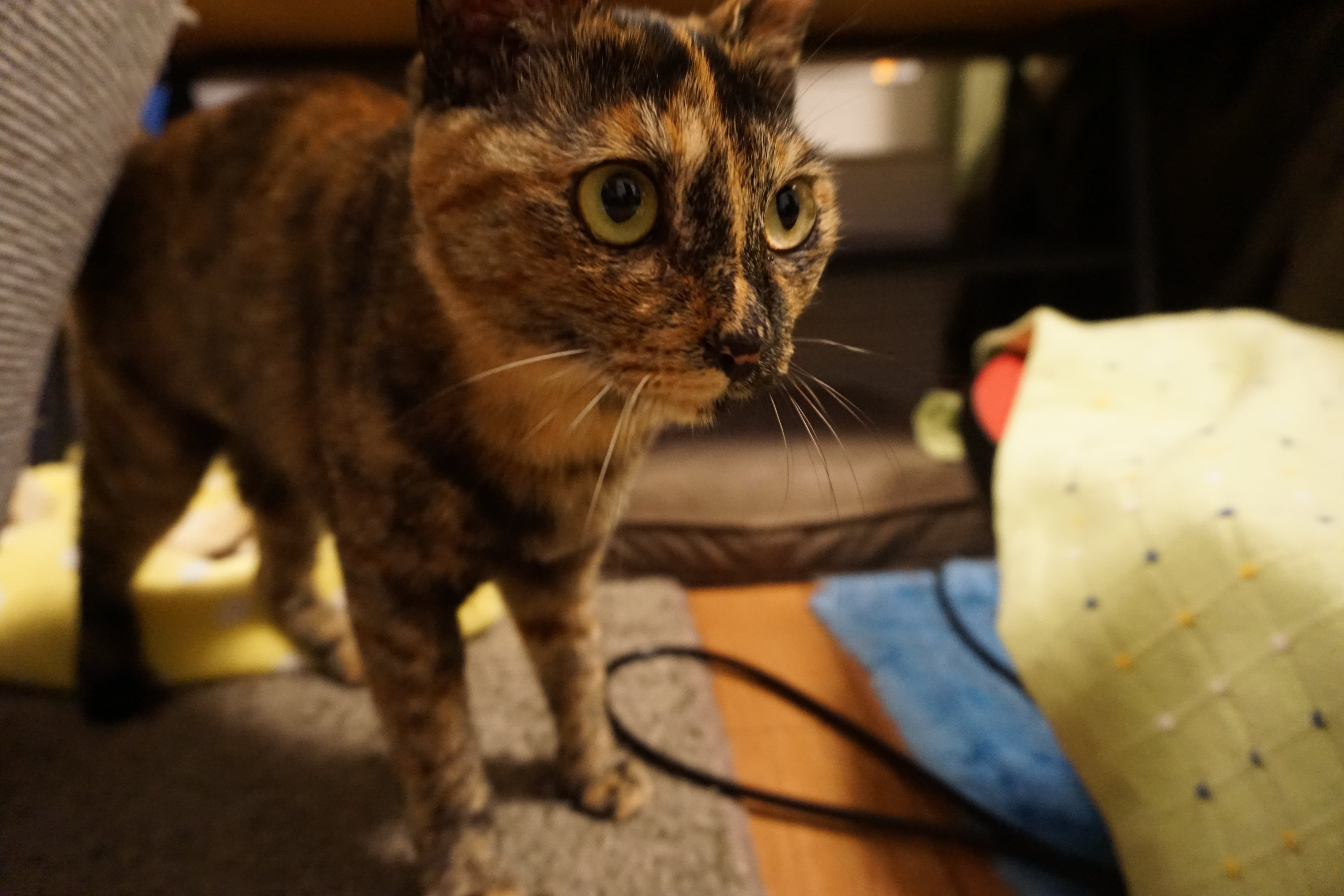 とにかくやんちゃで、よく食べて、よく寝る、よく遊ぶ子です。私たちが寝るときには枕元で行ったり来たりして眠るのを妨害したり、深夜の大運動会が激しかったり、すごい手が焼けますがとても可愛い大切な家族です。