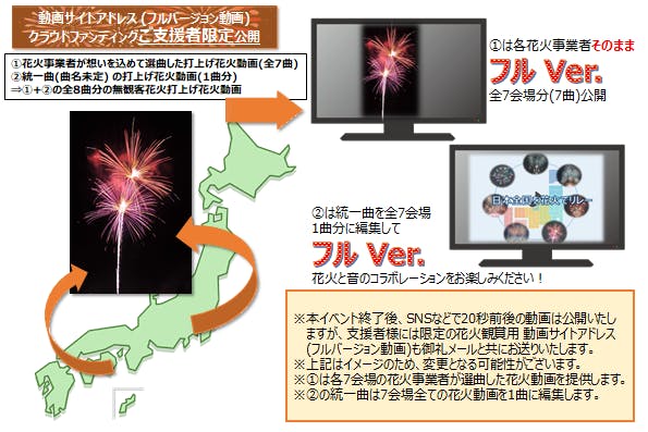 2020年7,8月に実施を計画している音楽花火イベントである『キズナハナビ』の開催を実現したく、皆様からのご支援をお願い申し上げます。
