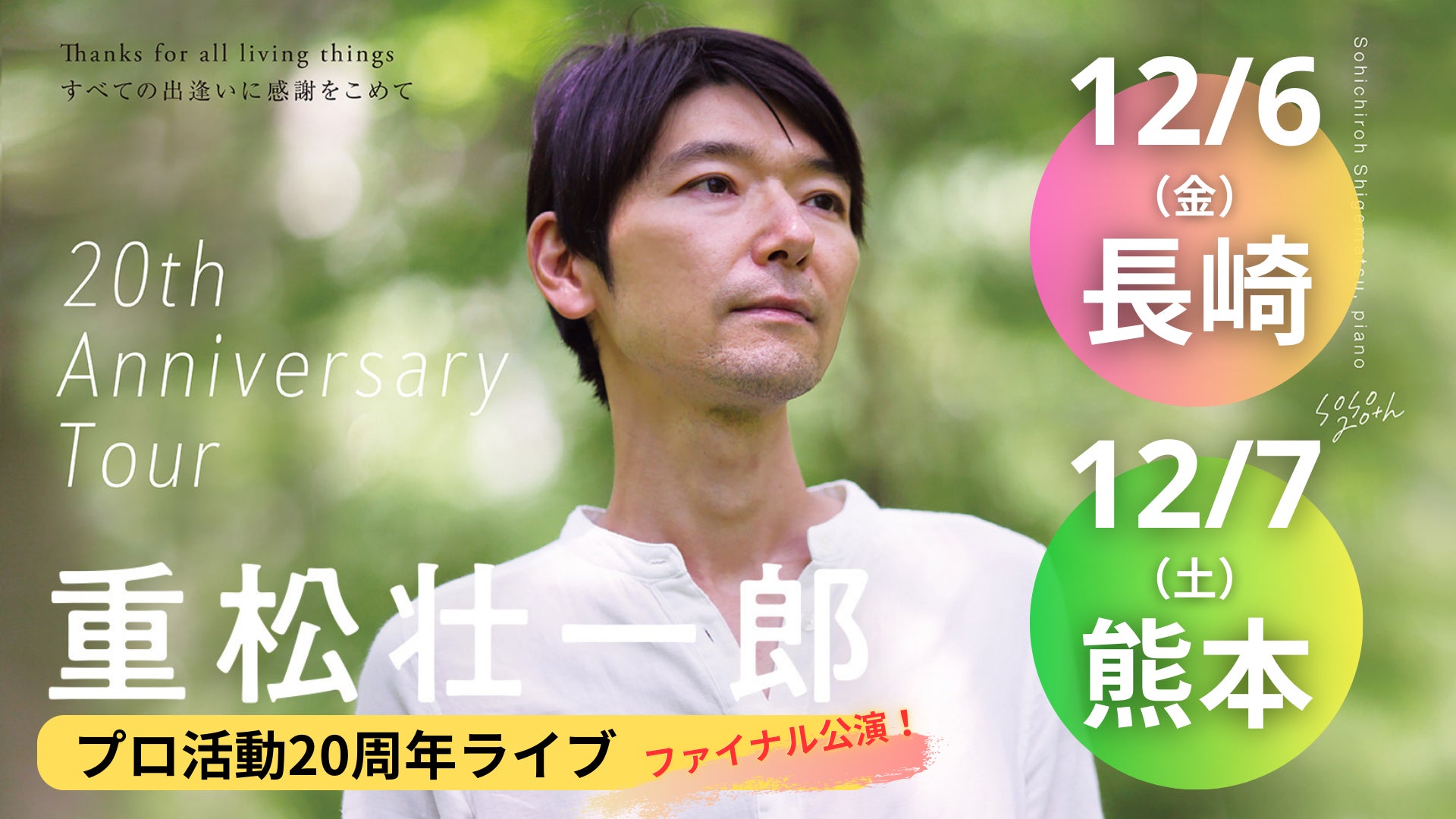 こんにちは、ピアニストの重松壮一郎です。今年もどうぞよろしくお願いいたします。今年はプロ活動22年目。22年の歩みのなかで音楽は、より深く、より自由なものへと育まれてきました。常に変化し続ける「いま、生きている音」に、ぜひ出会いにいらしてください。━━━━━━━━━━━━━━━━音つむぎサポーターズ、開始!━━━━━━━━━━━━━━━━1月11日付で、サポーター制度、「重松壮一郎 音つむぎサポーターズ」を公開しました。このサポーターズは、ライブの記録や言葉の共有を通して、音楽の時間を、少し近くで分かち合うための場です。20年以上音楽活動を続ける中で、音楽の届け方や環境の変化を感じ、次のフェーズに進むための選択として、この場所を立ち上げました。無理のない距離感で、それぞれのペースで参加していただけたらうれしいです。★詳細・ご参加はこちらhttps://community.camp-fire.jp/projects/view/916081
