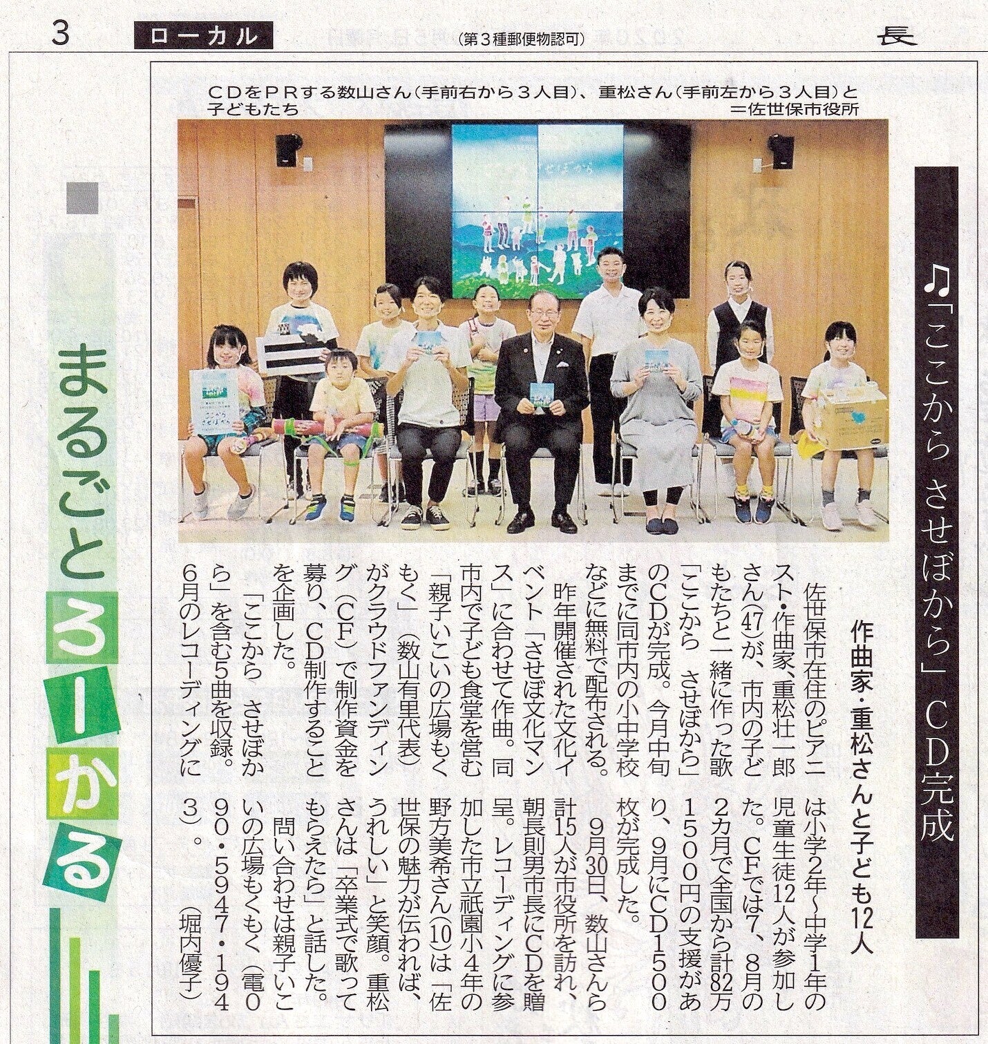 全国の皆さんにクラウドファンディングでご支援いただき完成したCD「ここから させぼから」をたずさえて、9月30日に佐世保市長を表敬訪問。子どもたちと一緒に、CDを贈呈して参りました。