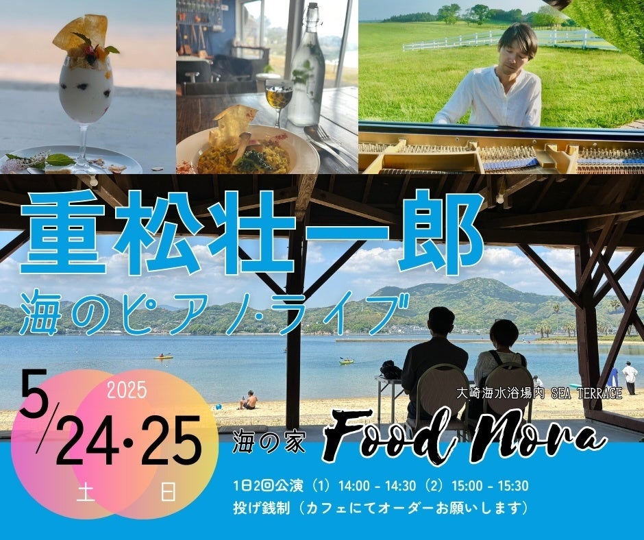 2025/05/09 17:06こんにちは!ピアニストの重松壮一郎です。GW明け、体調など崩されていないでしょうか。5月は長崎・大崎海水浴場にて、海の家にピアノを運び込んでライブします。最高の行楽シーズン、ぜひお越しください!━━━━━━━━━━━━━━━━━━━━重松壮一郎 海のピアノ・ライブin 海の家 Food Nora━━━━━━━━━━━━━━━━━━━━◯とき: 2025年5月24日(土)25日(日)◯会場: 海の家 Food Nora(川棚町)◯時間: (1)14:00 - 14:30(2)15:00 - 15:30◯料金: 投げ銭◯出演: 重松壮一郎(ピアノ)【ライブの詳細 & ご予約】https://www.livingthings.org/schedule/250524_nora/────────────────────コンサートの紹介────────────────────大崎海水浴場の海の家 “Food Nora”に、小さなアップライト・ピアノを運び込み、2日間にわたりライブを開催します。海風を感じながら、この環境でしか生まれない音をお届けします。ㅤㅤㅤ海風に乗って届く、ピアノの音色に浸ってください。天候が良ければ、ピアノを外に出すことも検討しています!*30分 x 2回公演。カフェでのご注文をお願いいたします。*投げ銭制。感動した分だけ任意の額を箱に入れてください。ㅤㅤㅤ(昨年のライブの様子)ㅤㅤㅤ────────────────────会場へのアクセス────────────────────■海の家 Food Norahttps://www.instagram.com/kimagure_na_nora/長崎県東彼杵郡川棚町小串郷296(大崎海水浴場内Sea Terrace)tel: 090-4174-3676(11:00 – 16:00)*大崎海水浴場の駐車場をご利用ください*JR小串郷駅から2.1km(徒歩27分) もっと見る