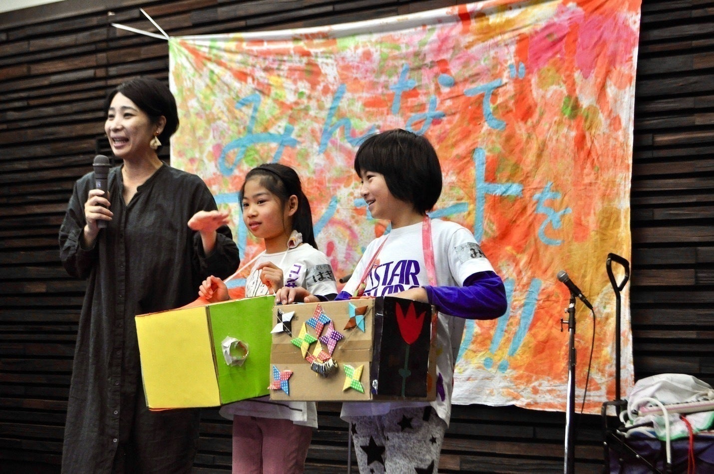 このイベントで、重松壮一郎と「親子いこいの広場もくもく」は、子どもたちが主役になって作り上げる「みんなでつくる こどもコンサート」を企画。楽器作り、衣装作り、演奏まで、子どもが主体となり、コンサートを作り上げました。
