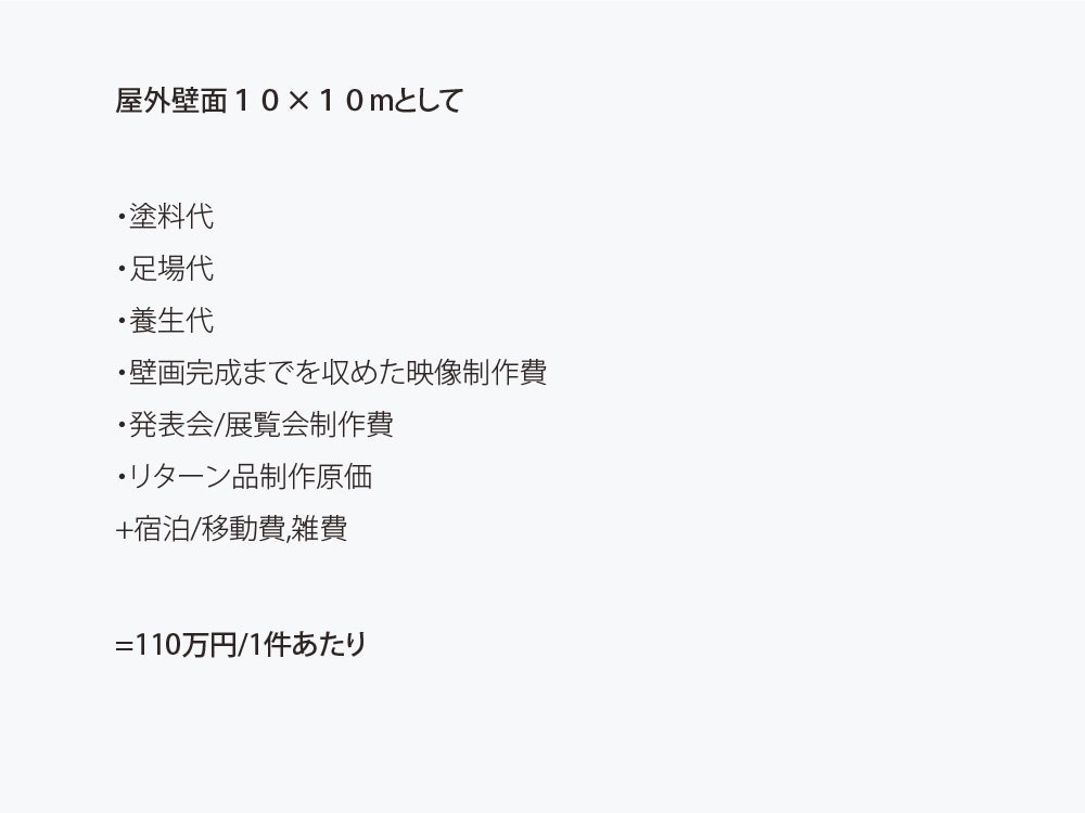 ・また目標金額のストレッチゴールとして、集金額に合わせて壁のサイズ/ミューラルの件数といった規模を調整する予定です。