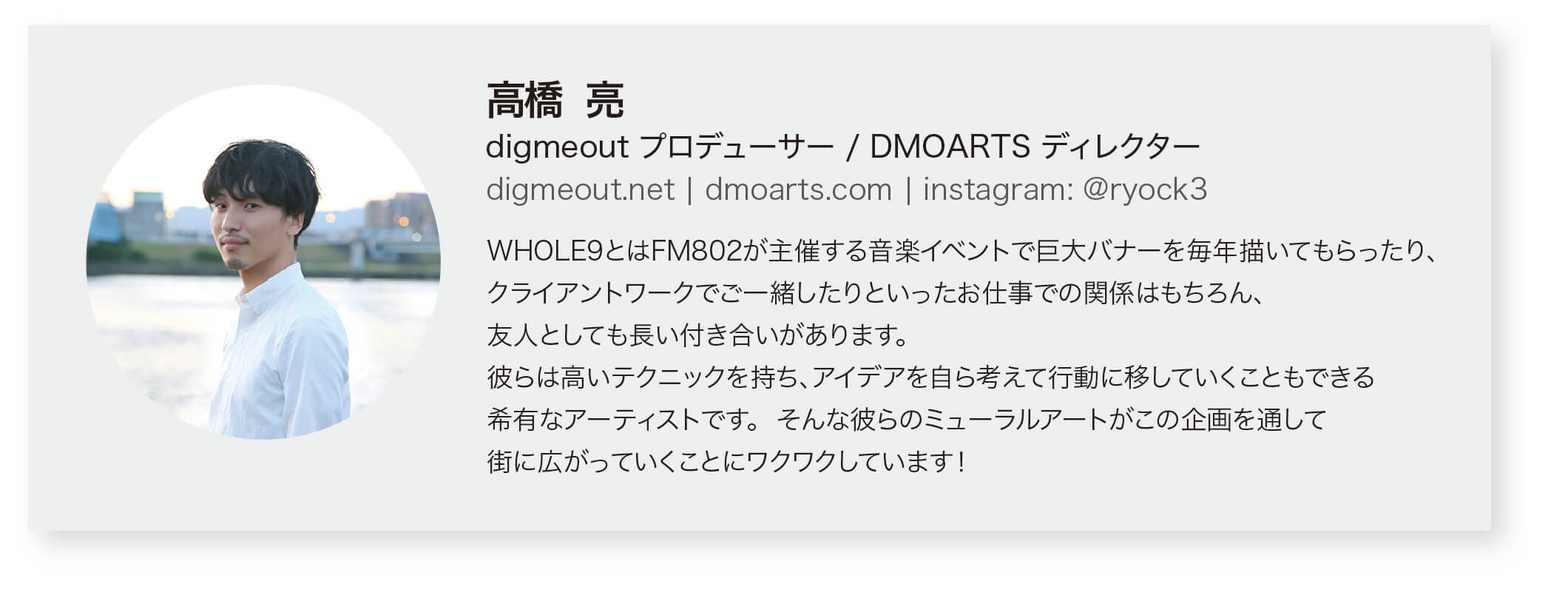 協力:BnA株式会社、digmeout、FM802、FM COCOLO、TokyoDex、株式会社nuries