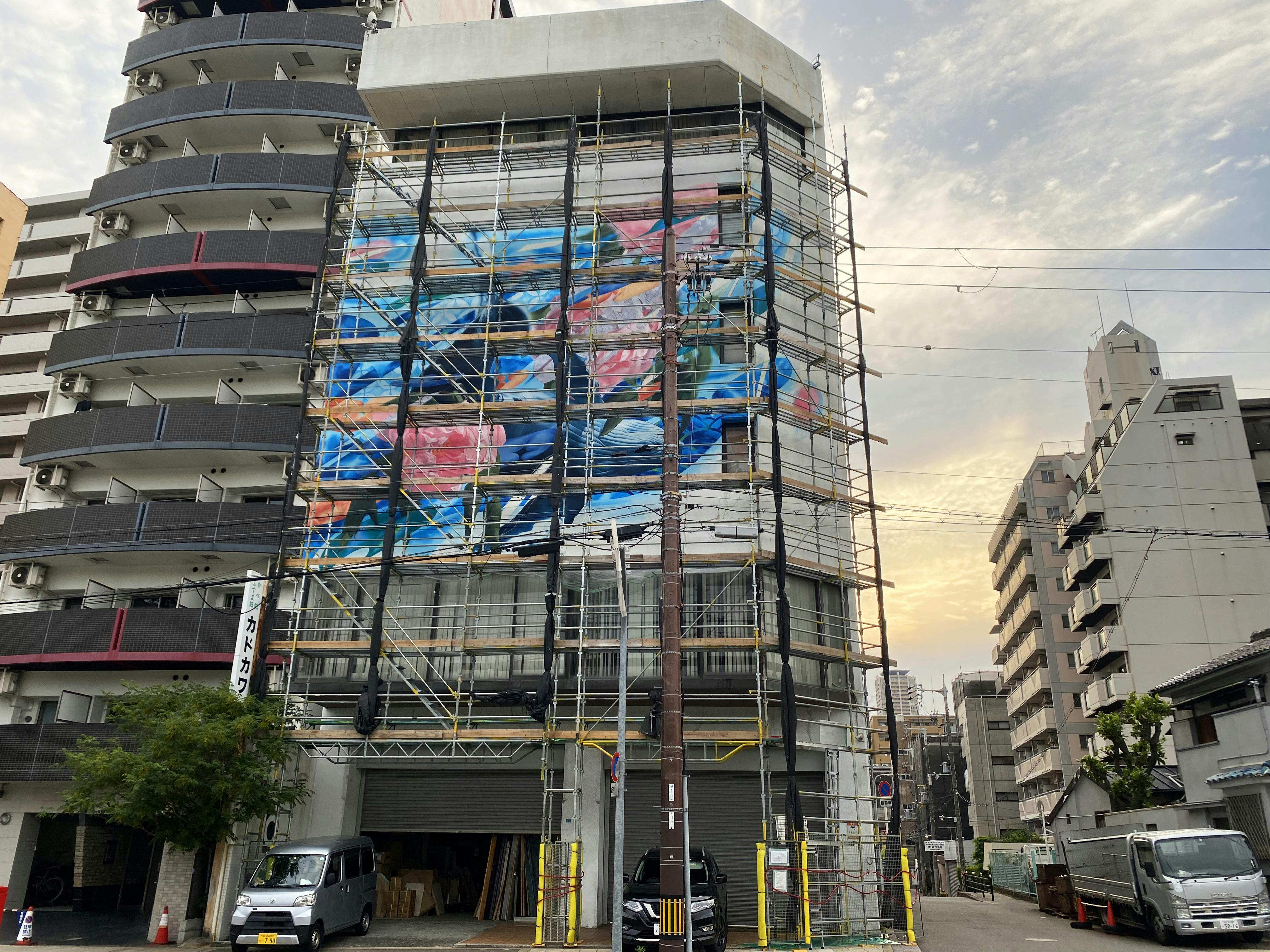 2022/05/18 22:58こんばんは!WHOLE9です。夜分に失礼します。#CYC大阪 順調に制作進んでいます!明後日20日に絵は完成です。支援者の皆様には前回からお伝えしていました、21日の足場解体後の完成披露についてお知らせです。CYC大阪 完成披露式典日時: 5月21日(土) 17時 〜20分程度会場: カドカワ株式会社https://kadokawairoha.com/大阪府大阪市浪速区下寺2丁目9-1外壁前にて作品タイトルの発表、協力者へのインタビューを予定※職員の方・関係者・近隣の方など、どなた様も自由にご覧いただけるカジュアルな場です。式典といってもおかたい感じではなくフランクに楽しめるものを目指しますので、お近くでお時間合う方はぜひ!お気軽にお越しください。よろしくお願いいたします!WHOLE9 hitch, simo もっと見る