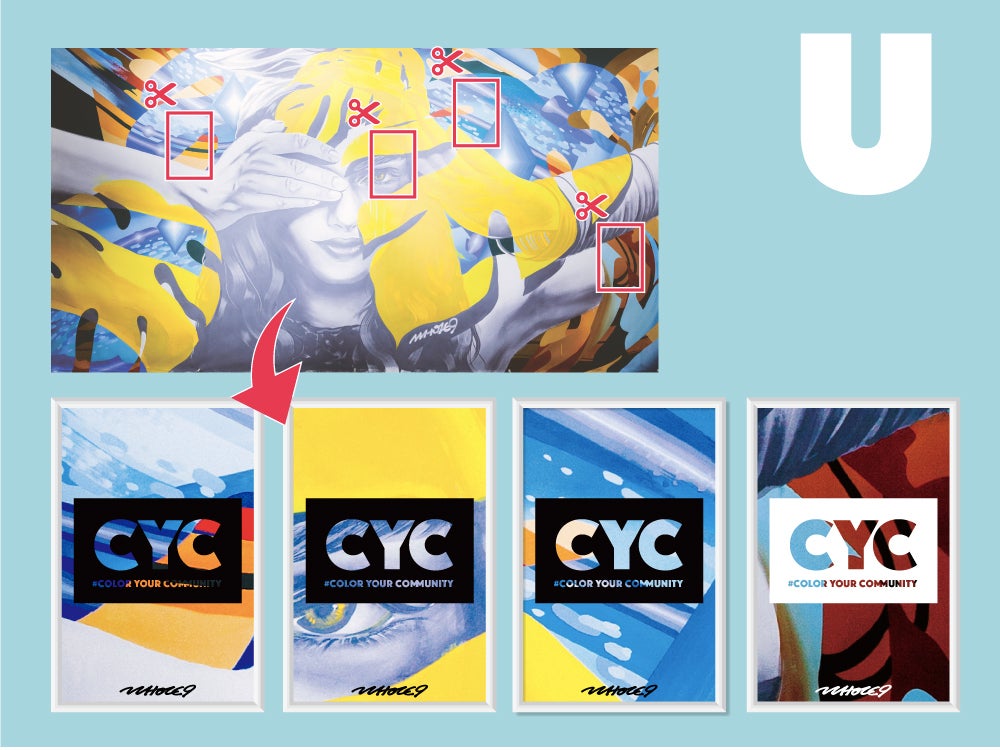 過去に描いたライブペイント作品をカットして、#CYCロゴをシルクスクリーンで手刷りした一点物ポスターです。手描きサインと限定数エディション入り。