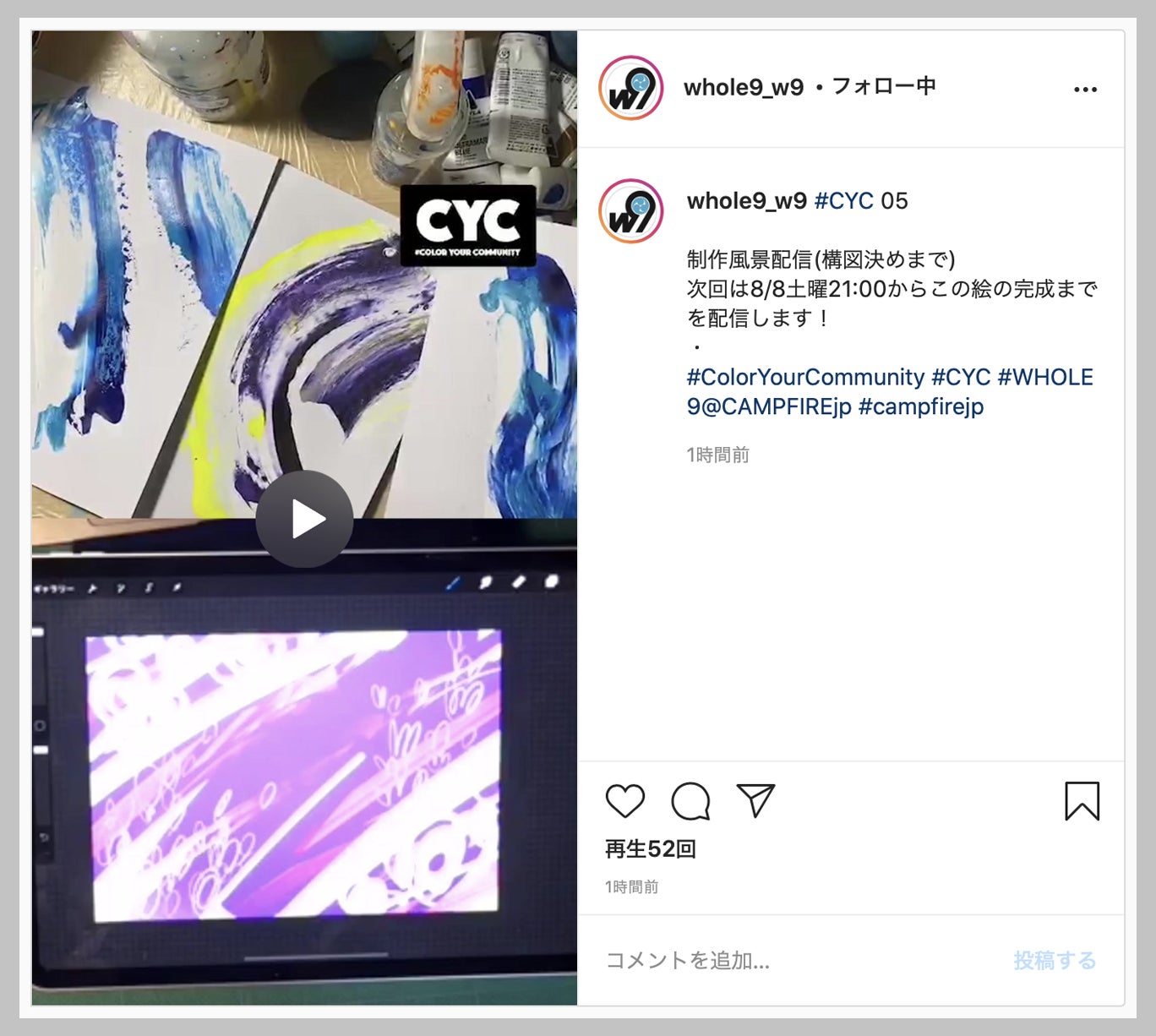 Instagram 制作ビジュアルの投稿や進捗の発表