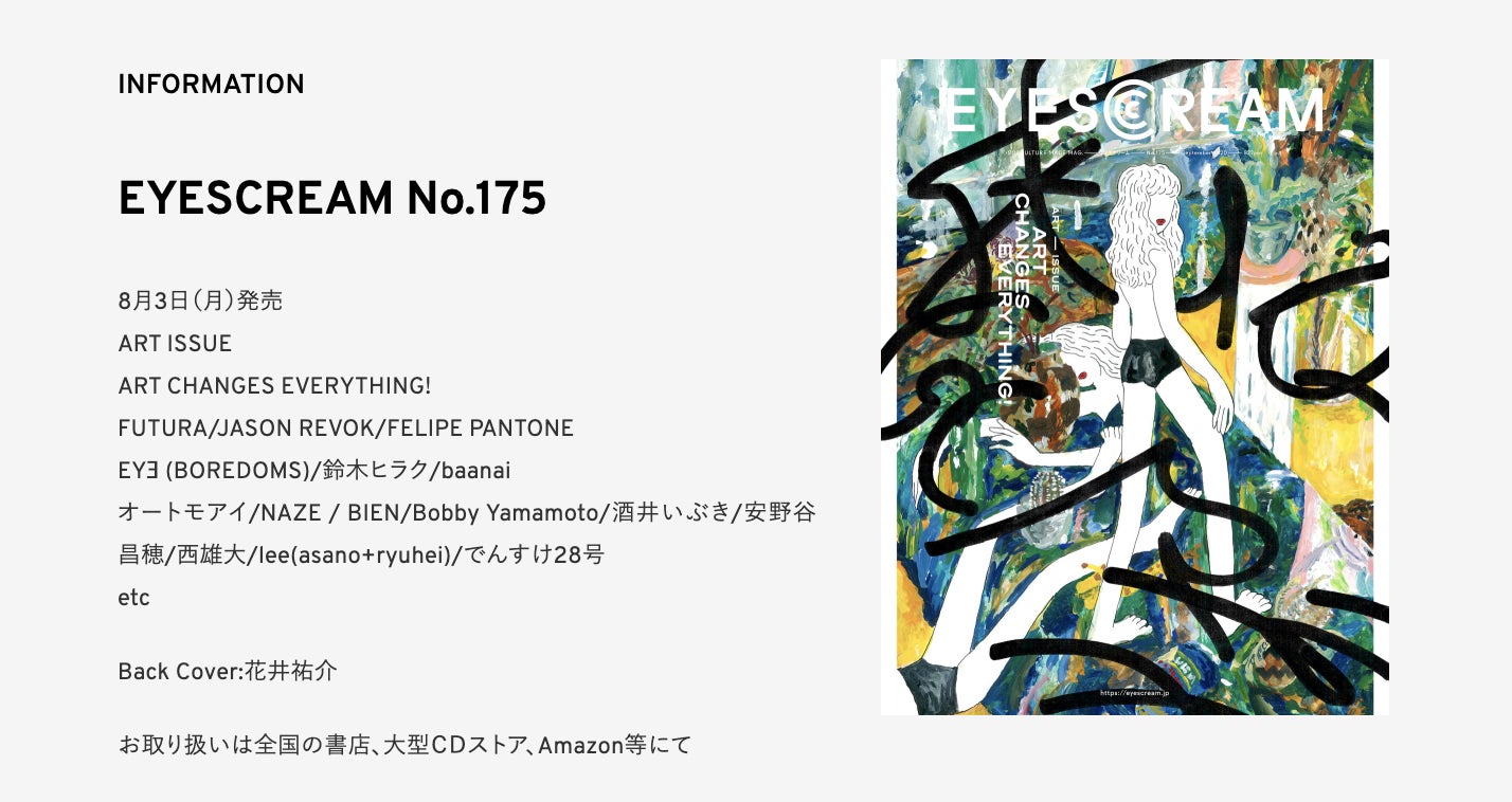 8/3発売のカルチャーマガジン EYESCREAM No.175 にて
