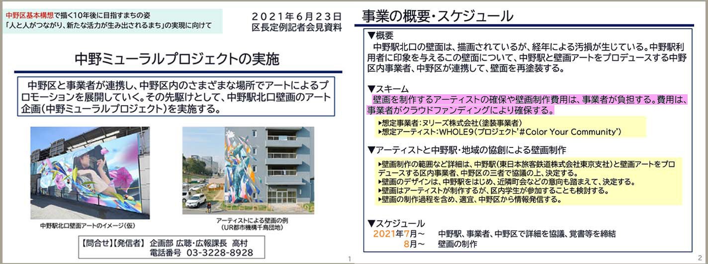 中野区長の定例記者会見資料しっかりと地域に根ざした活動と協力して取り組むことで、僕らだけでは到底辿り着けない好条件での制作ができました。