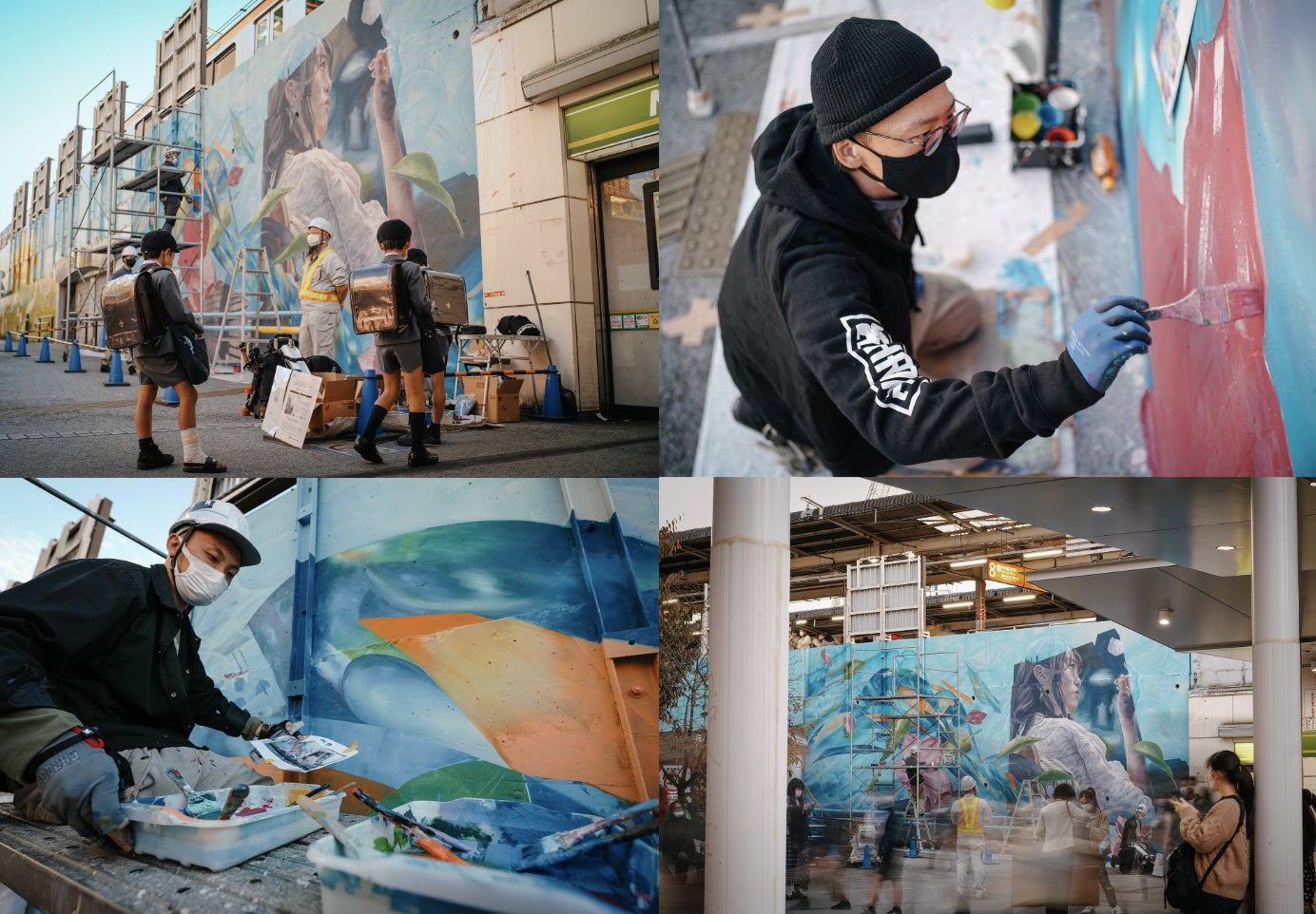 中野区やJR中野駅、ヌリーズ株式会社などなど本当に沢山の方々を巻き込んで、最高のロケーションに絵を残すことができました。