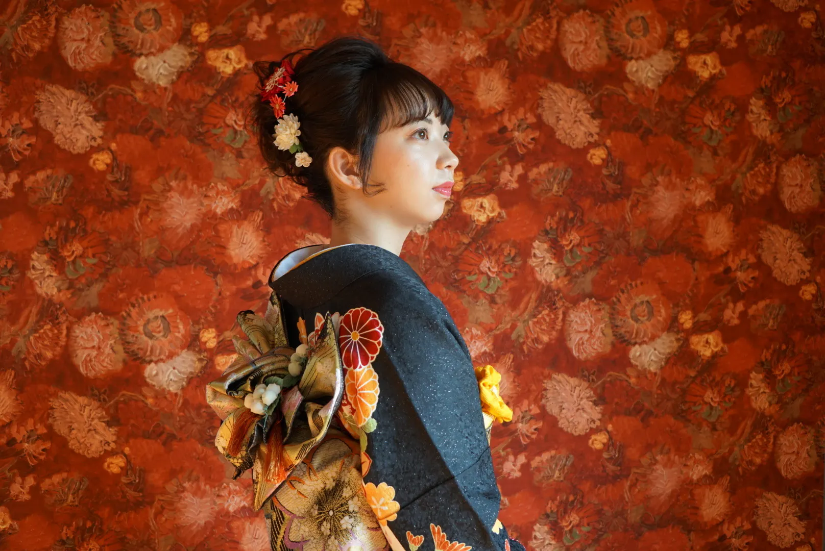 ゴッホの赤い薔薇にお着物がとても映えます。