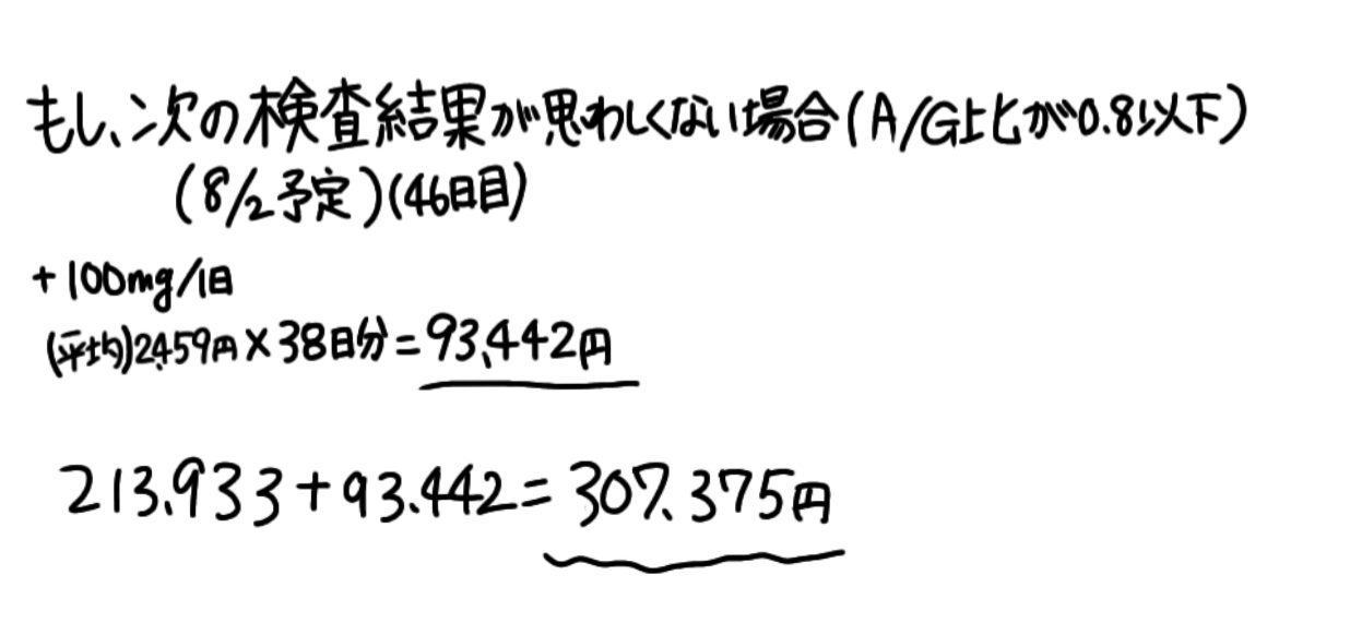 体重も増えている中、もし次の検査予定日(8/2予定、46日目)に結果が思わしくない場合、投与量を増やす可能性があります。