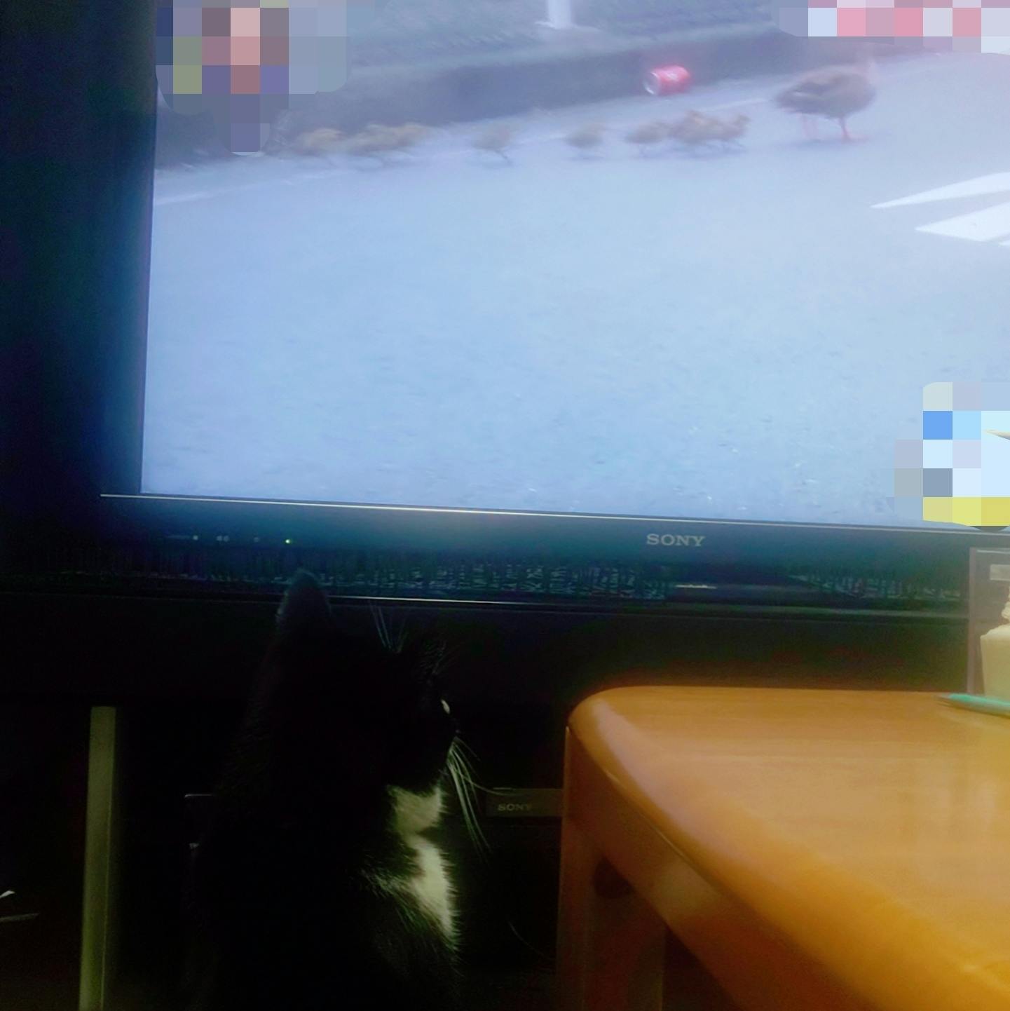 画面に向かってじゃれるかと思いきやジッと行く末を見守っていました!