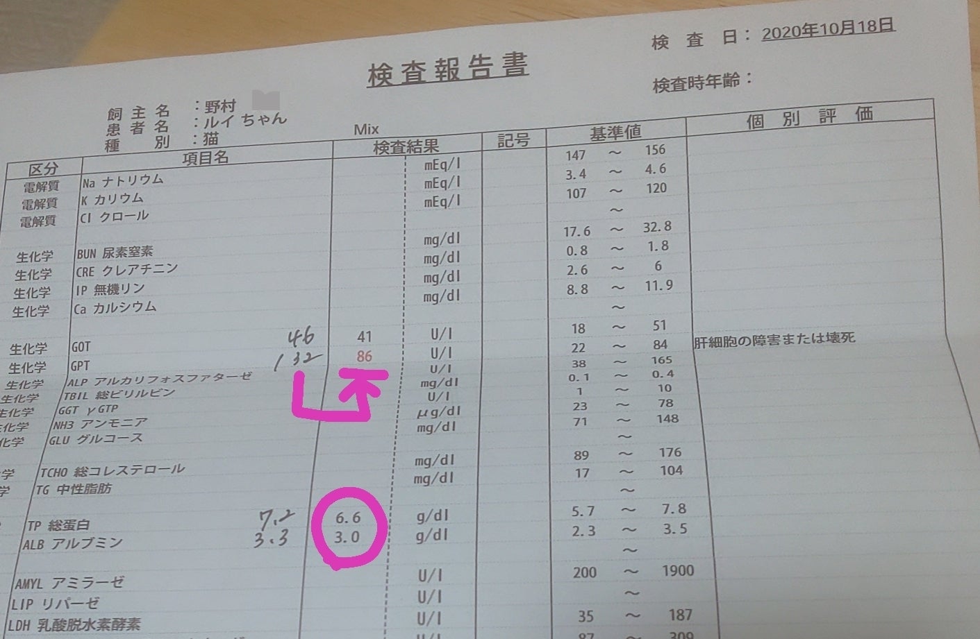 →前回先生に「次回の血液検査で肝臓の数値が悪くなく食欲不振、嘔吐、下痢もなければエコー検査までする必要はありません。」と言われていました。