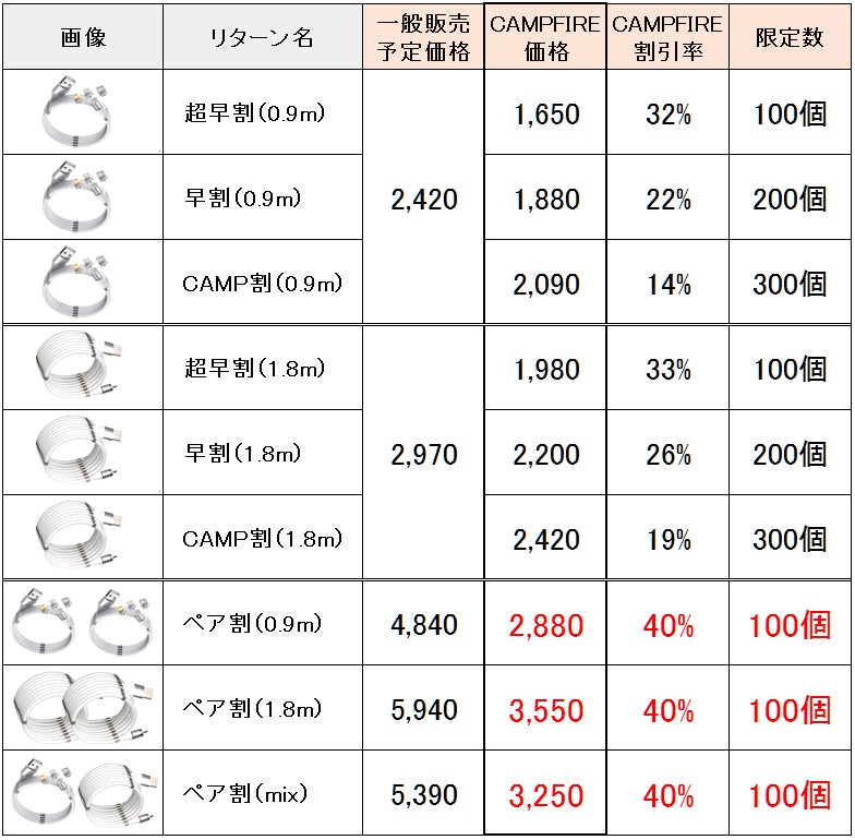 A.今回すべてのリターンに「3種類の端子」が付属しております。