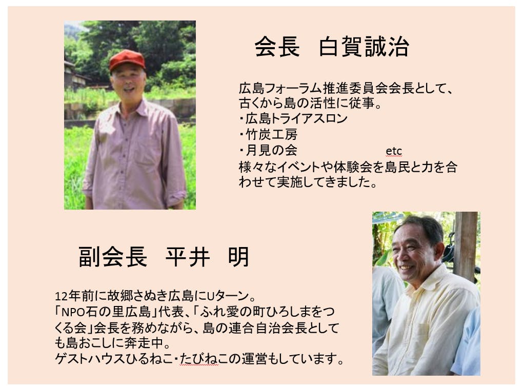 皆で島のこれからのあり方を模索していく中で、昨年7月に本協議会を立ち上げました。持続可能な地域にしていくために、交流人口の適度な増加、そして更なる移住者増加を目指して活動を始めました。