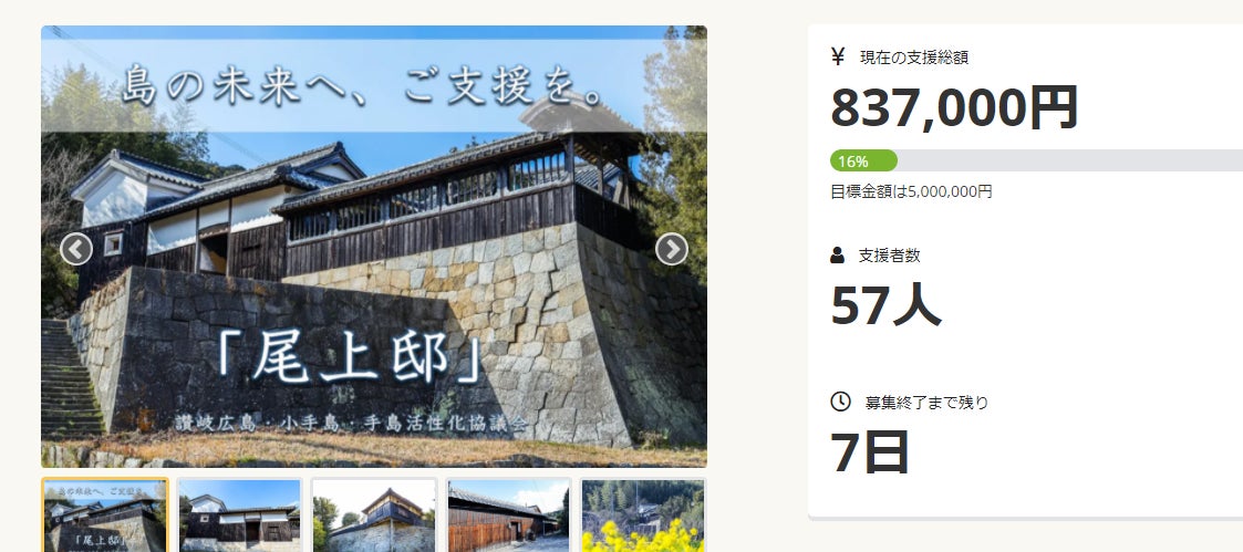 尾上邸のクラウドファンディングも残すところあと1週間となりました。10月12日現在、83万7000円のご支援を頂戴しております。ラストスパート!宜しくお願い致します!