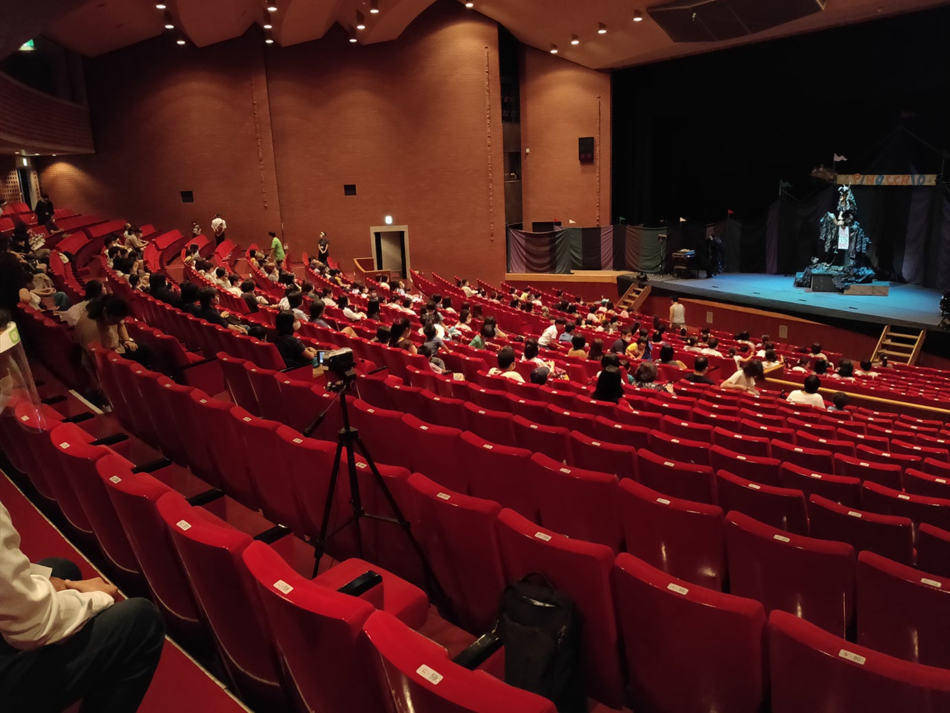 客席の様子。ご家族単位で座っていただき、両隣と前後1列分、間を空けています。広い客席だったこともあり、ソーシャルディスタンスを保ちながらも子どもたちに安心して舞台を楽しんでいただくことができました。
