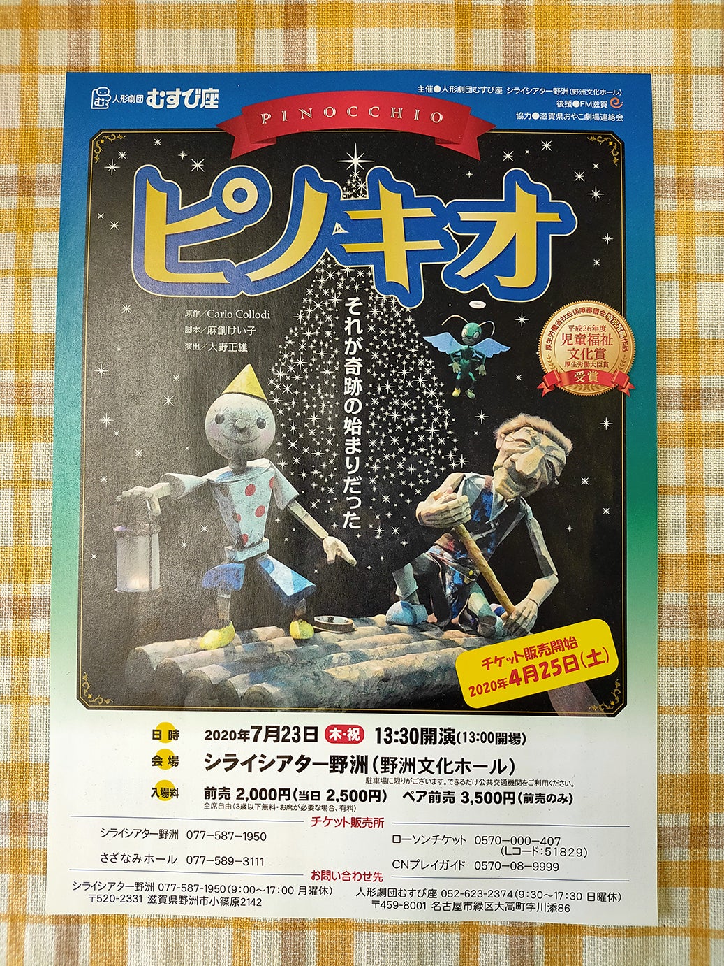 2020年7月23日、野洲文化ホール(滋賀県野洲市)にて行った「ピノキオ」最終公演。