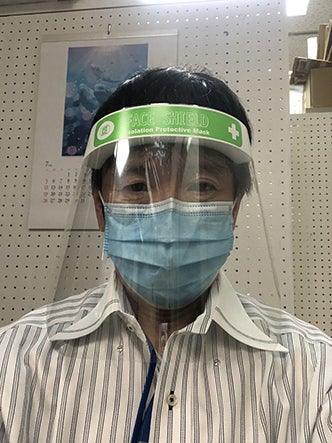 受付などでお客様に対応するスタッフは極力人数を絞り、フェイスシールド+マスク+ビニール手袋で対応しました。
