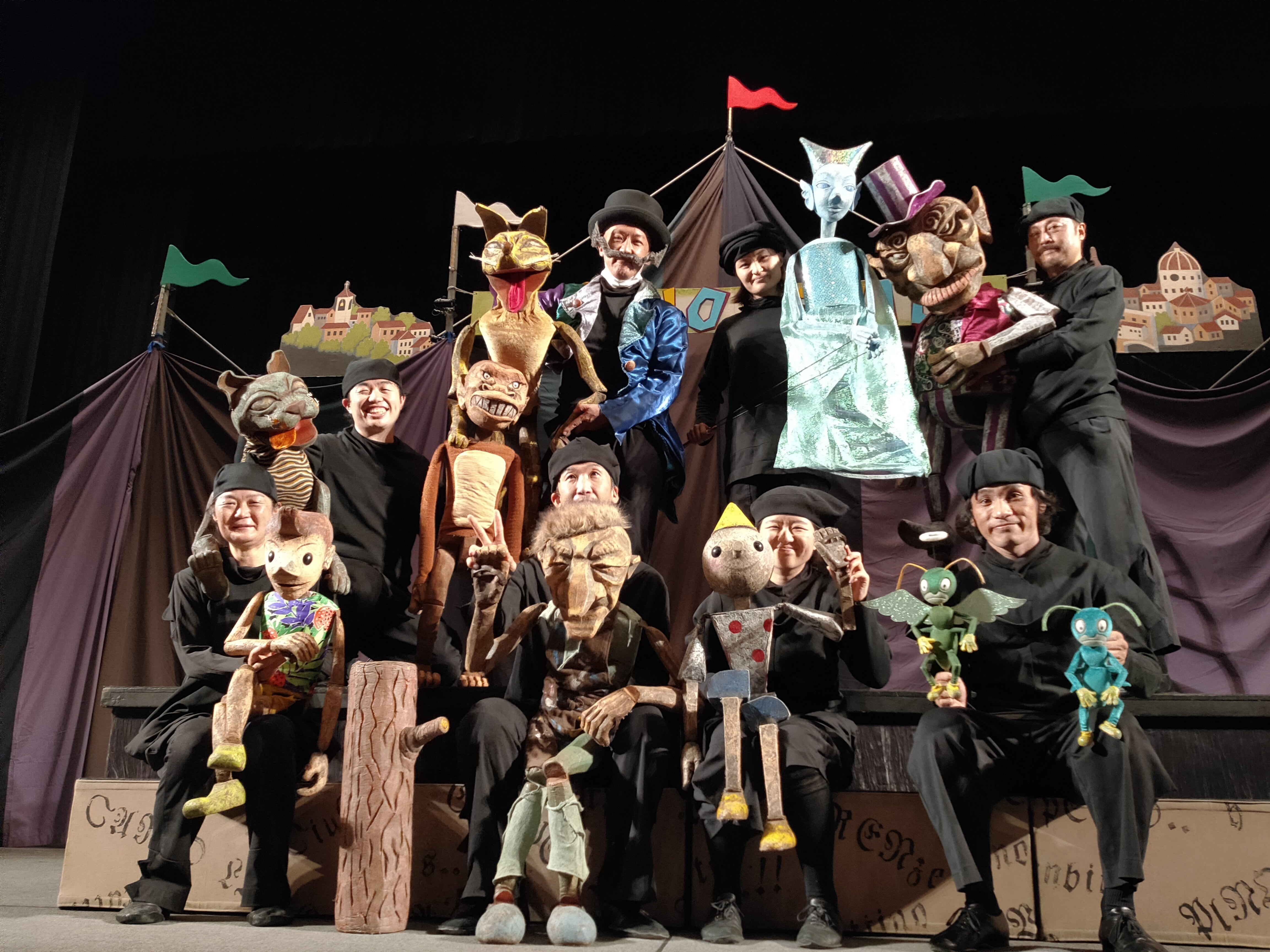 公演終了後の記念写真。「ピノキオ」人形たちはこれを最後に、倉庫で眠りについています。
