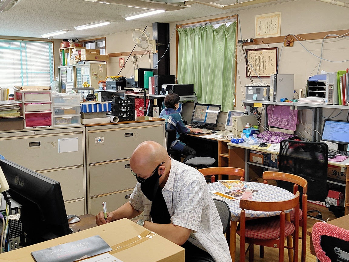 (↓事務所も、マスクをつけながら過ごしています。涼しくなり、やっと過ごしやすくなりました)