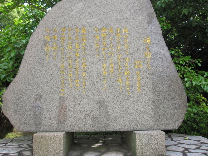 奈留高校内にある「瞳を閉じて」の歌碑。