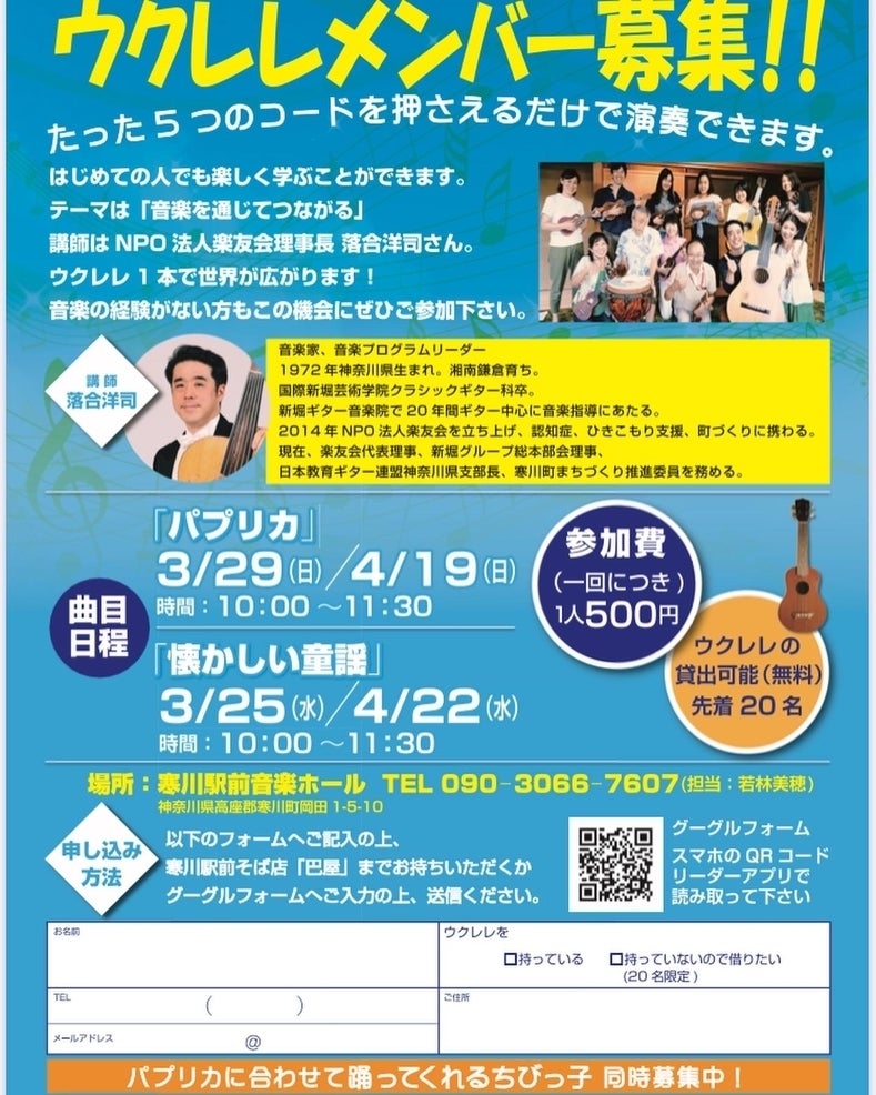 このクラウドファンディングを通じて「さむかわ音楽ひろば」という活動をご支援いただけますよう、よろしくお願いします!!