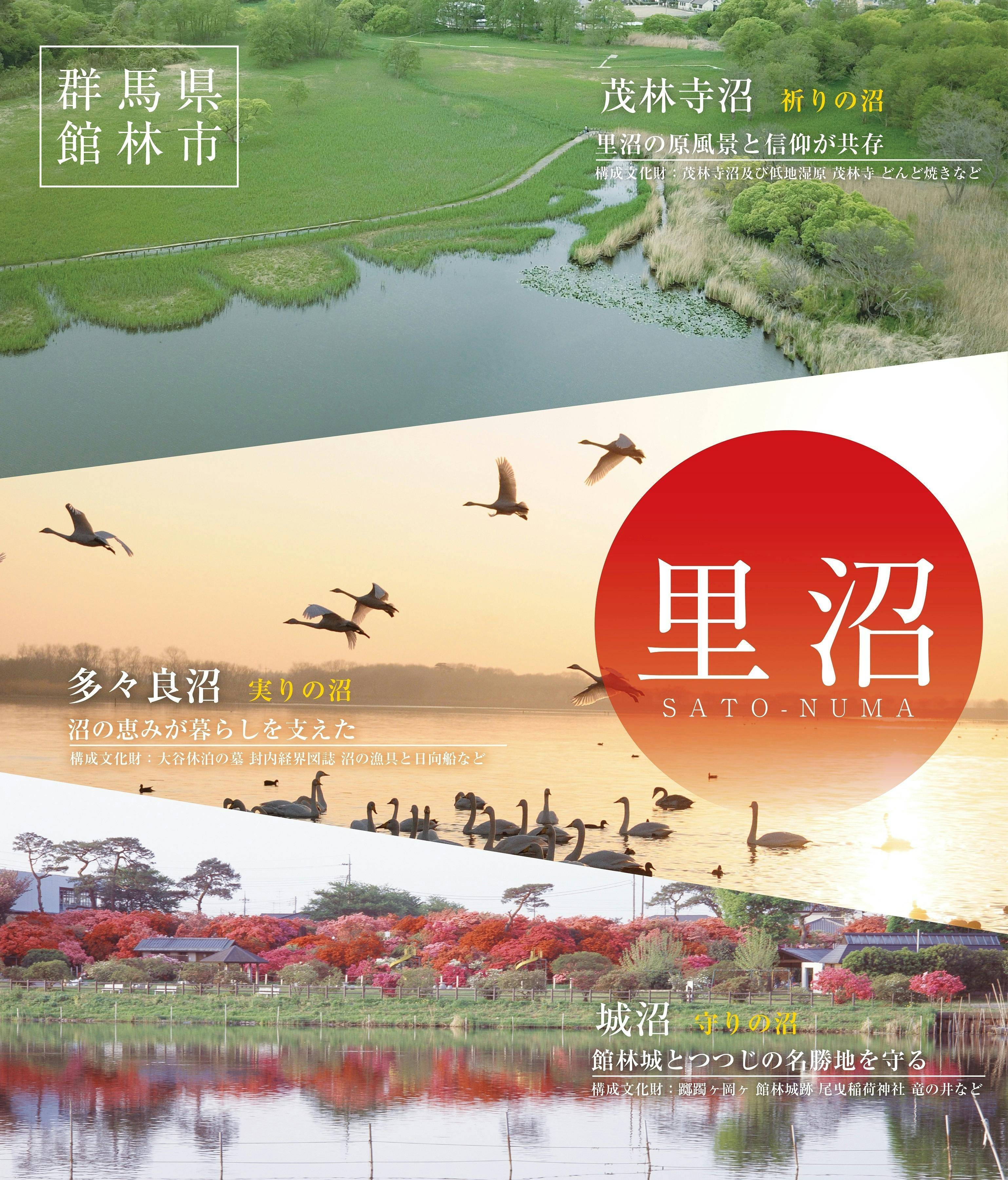 また、館林市は、平成31年1月23日、市内にある沼とそこで暮らしてきた人びとが沼との共生によって育まれた沼辺文化を「里沼(SATO‐NUMA)」として、文化庁日本遺産に申請し、文化庁や日本遺産審査委員会の厳正な審査を経て、令和元年5月20日に日本遺産に認定されました。