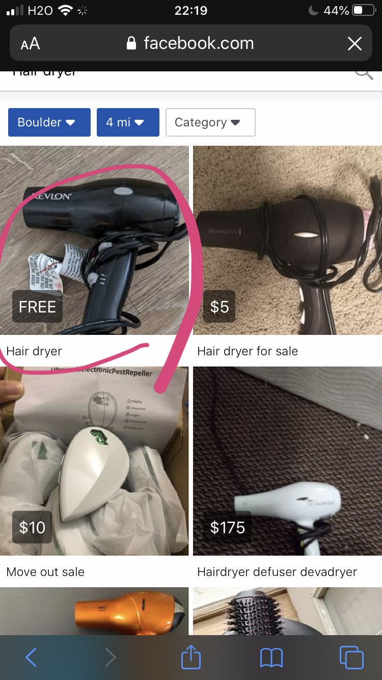 そこでFREE(タダ)のドライヤーをたまたま見つけたので、出品者に連絡を取り、早速もらいに行きました。出品してから2時間しか経ってないみたいだったので、見つけられてラッキーでした。チャリで片道40分だったのですが、町探検にもサイクリングにもなるし、初Marketplaceの経験にもなるし良いかとなぁと思い、行ってきました。