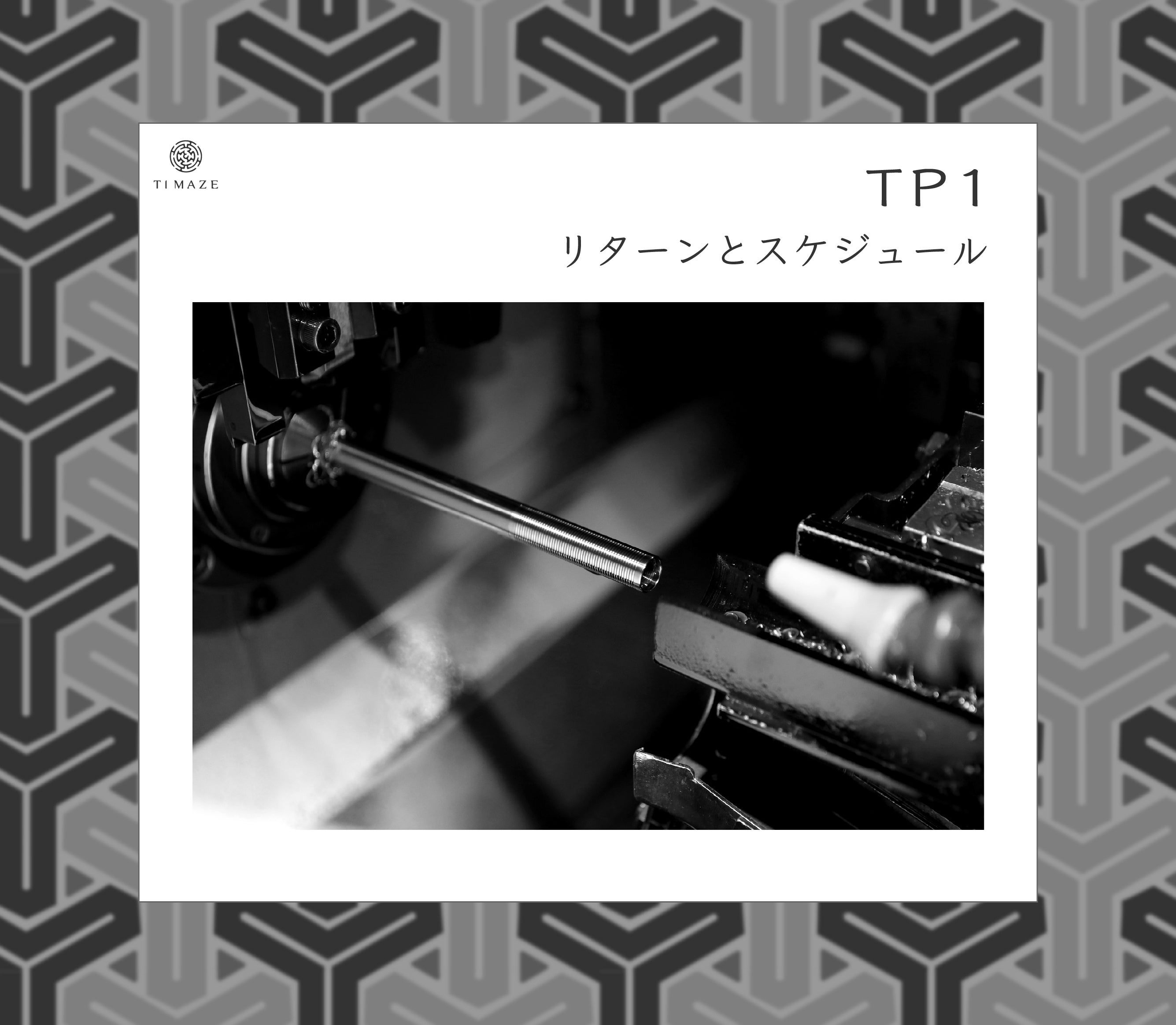 TP1には、純チタンであるグレード2チタニウムとチタン合金であるグレード5チタンという異なる二つのチタン素材を組み合わせ、使用しています。