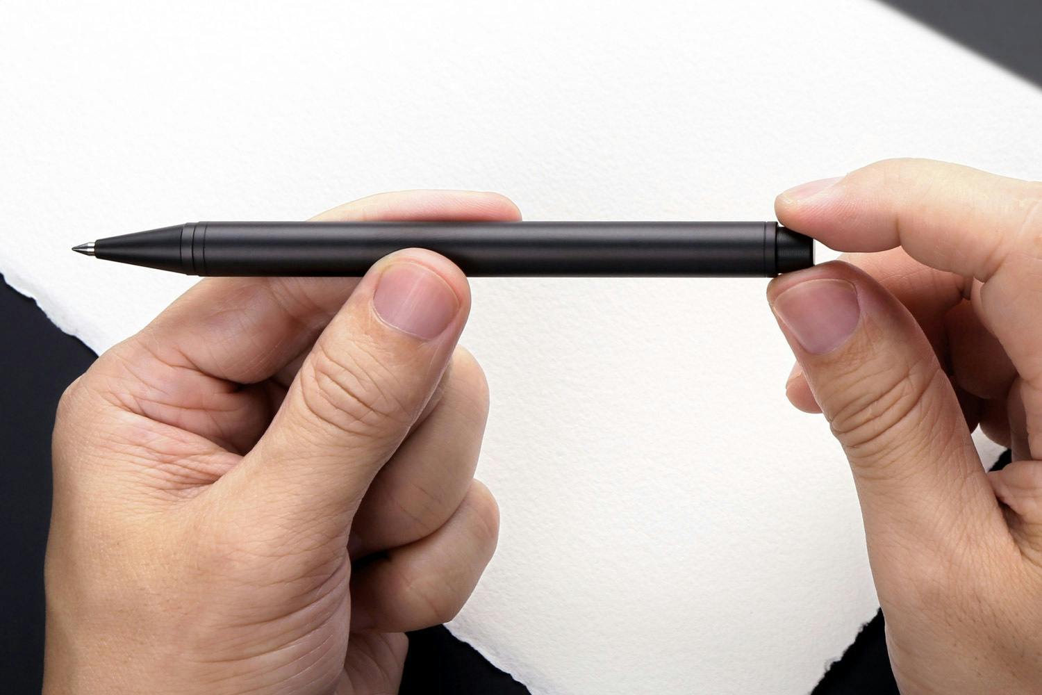 TP1には、普通のボールペンにあるようなクリップもグリップ部分も存在しません。あるのはチタンのユニボディとペン先と、ペン先を繰り出すためのノック部分のみです。