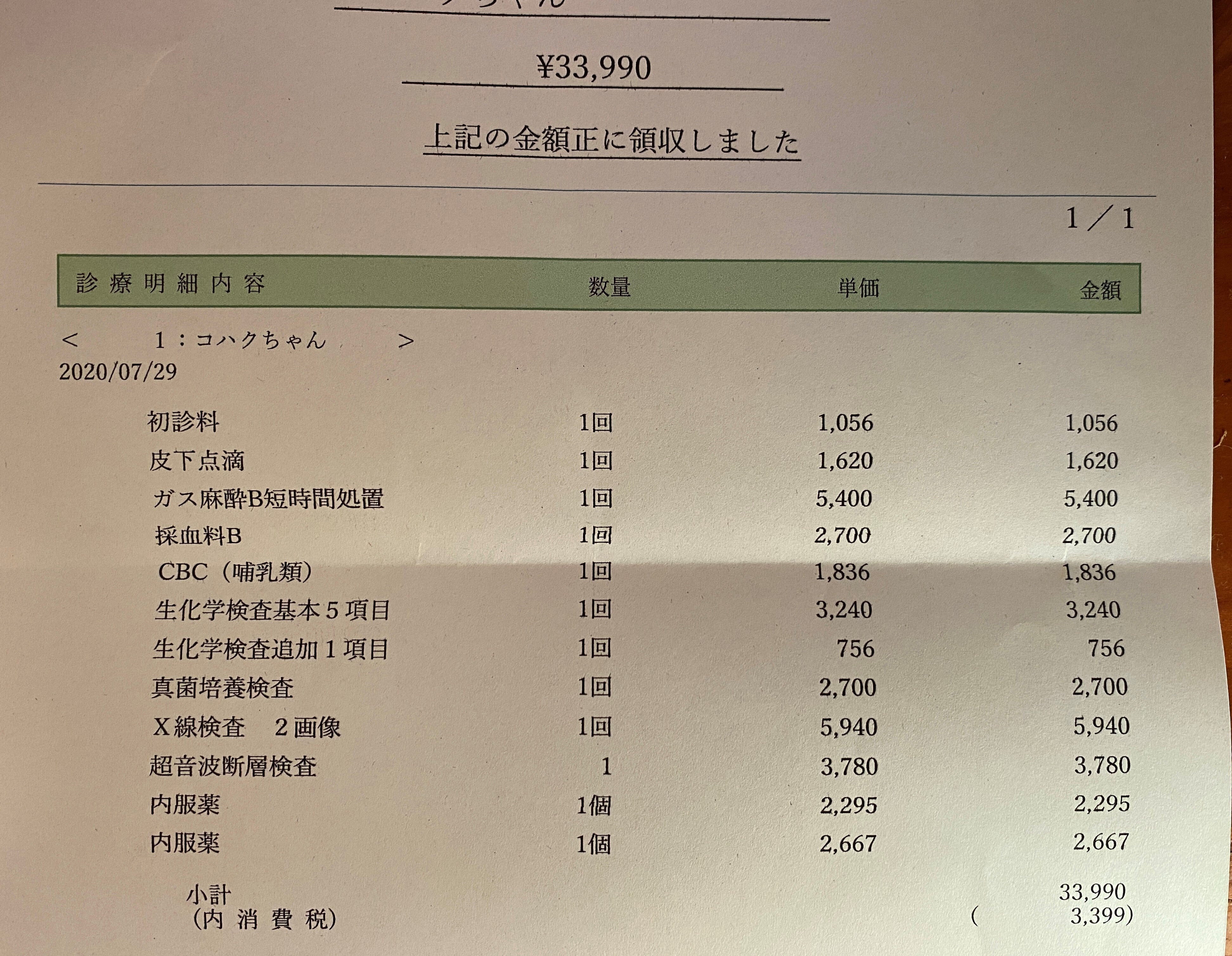 最近、コハクちゃんが元気がなく活発的じゃないと感じていたころ。7月29日水曜日の夜にぐったりしているのを見て、すぐさま救急で診てもらえる動物病院はないかさがし診察してもらいました。大きな動物とは違い、小動物はなかなか見てもらえる動物病院は私の住んでる地域にはなく。京都市内の病院にて診てもらいました。
