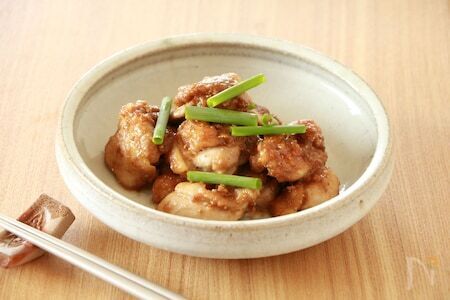 を加えて中火にかけ、鶏肉に絡める。 - お皿に盛り付け、お好みで青ねぎを添える。