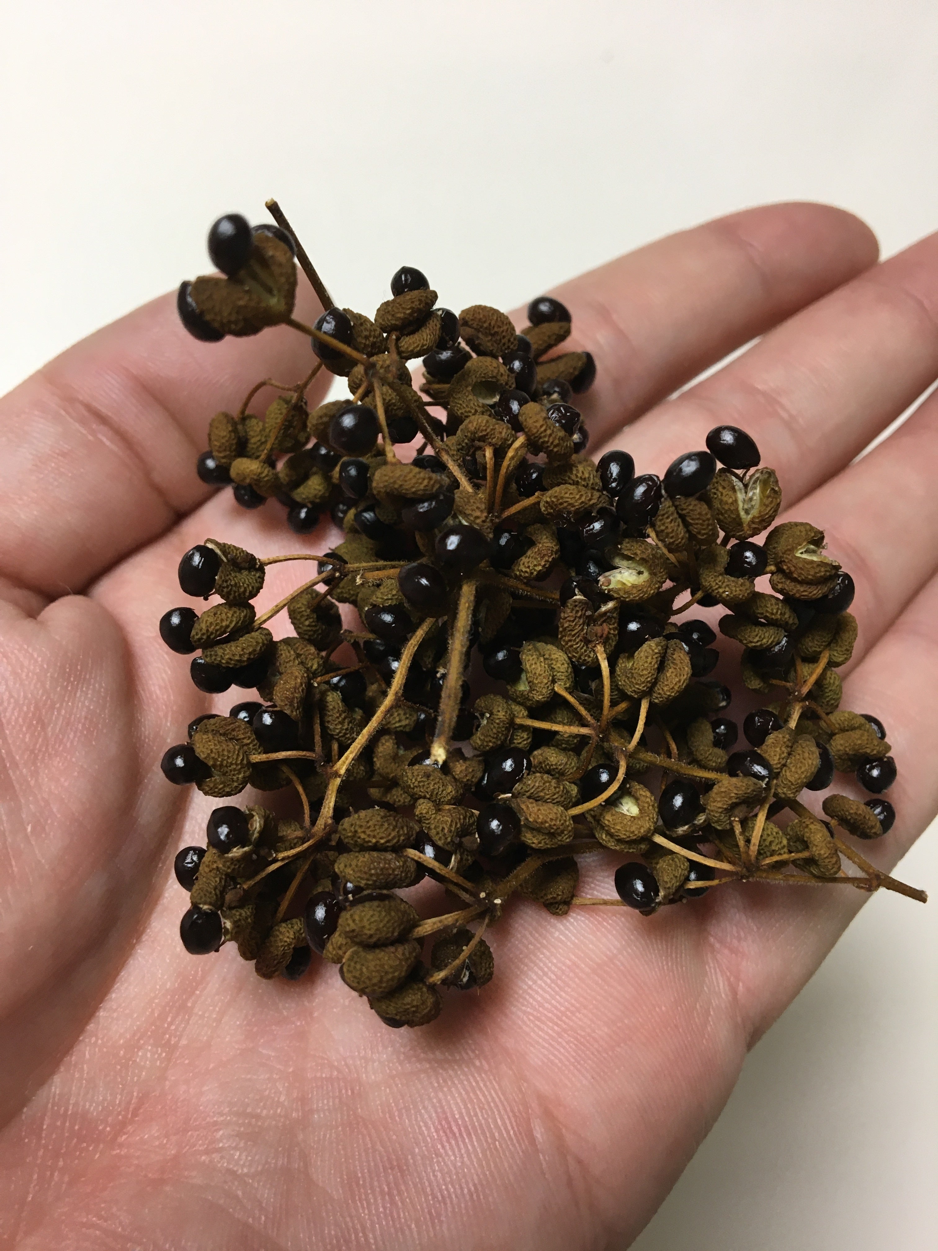 みなさん、あたたかいご支援ありがとうございます!おかげさまで目標額の40%を達成することができました。山椒の種を見たことがない方が多いと思いますので、画像を添付します。画像の黒いものが山椒の種になります。大きく膨らんだ山椒の実を乾燥させると中から種がはじけでてきます。リターンは、この山椒の種と乾燥した山椒の実を丁寧に細かい枝を取り除いたものをご用意させていただきます。山椒の実はすりつぶして色々なものに使える万能調味料ですので、ピリリと辛い味をお楽しみください♬