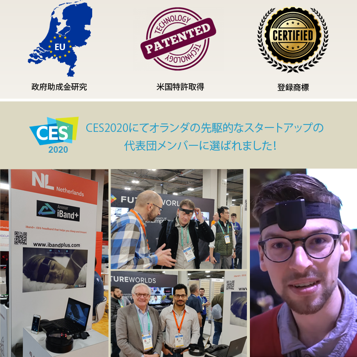 A. iBand+の研究開発を推進するための権威ある政府の助成金を受けています(https://www.health-holland.com/project/2019/iband-headband-to-measure-and-improve-sleep-and-dreaming)。米国特許も付与されています(https://patentimages.storage.googleapis.com/2b/71/28/f41fdee29dc1f5/US10532183.pdf)"