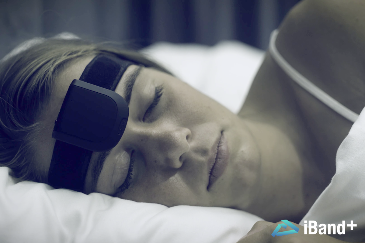 iBand+は、脳波を感知し、睡眠を追跡し、睡眠の質を示し、改善についてのフィードバックを提供します。