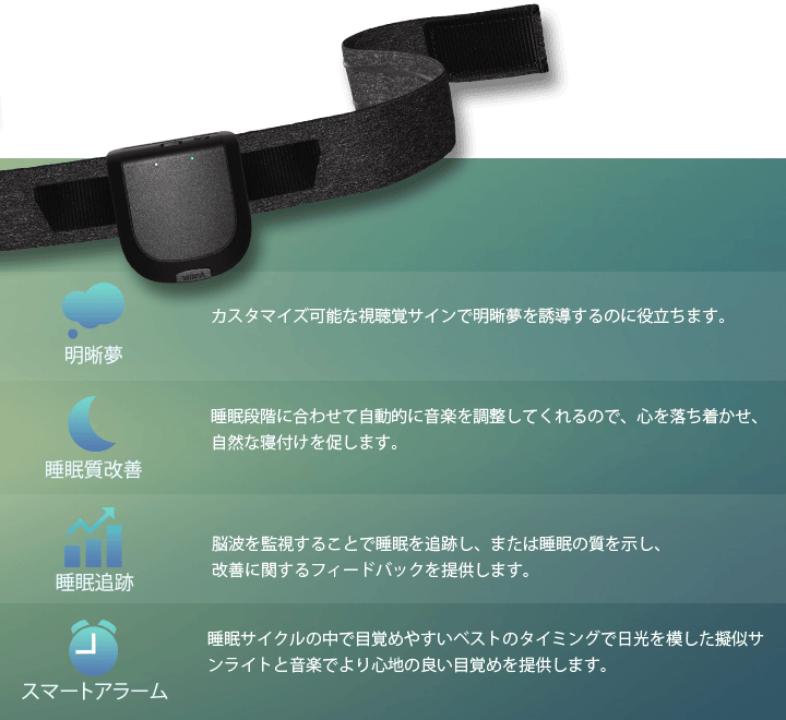 EEG テクノロジーで健康的な睡眠と夢のコントロールが実現。